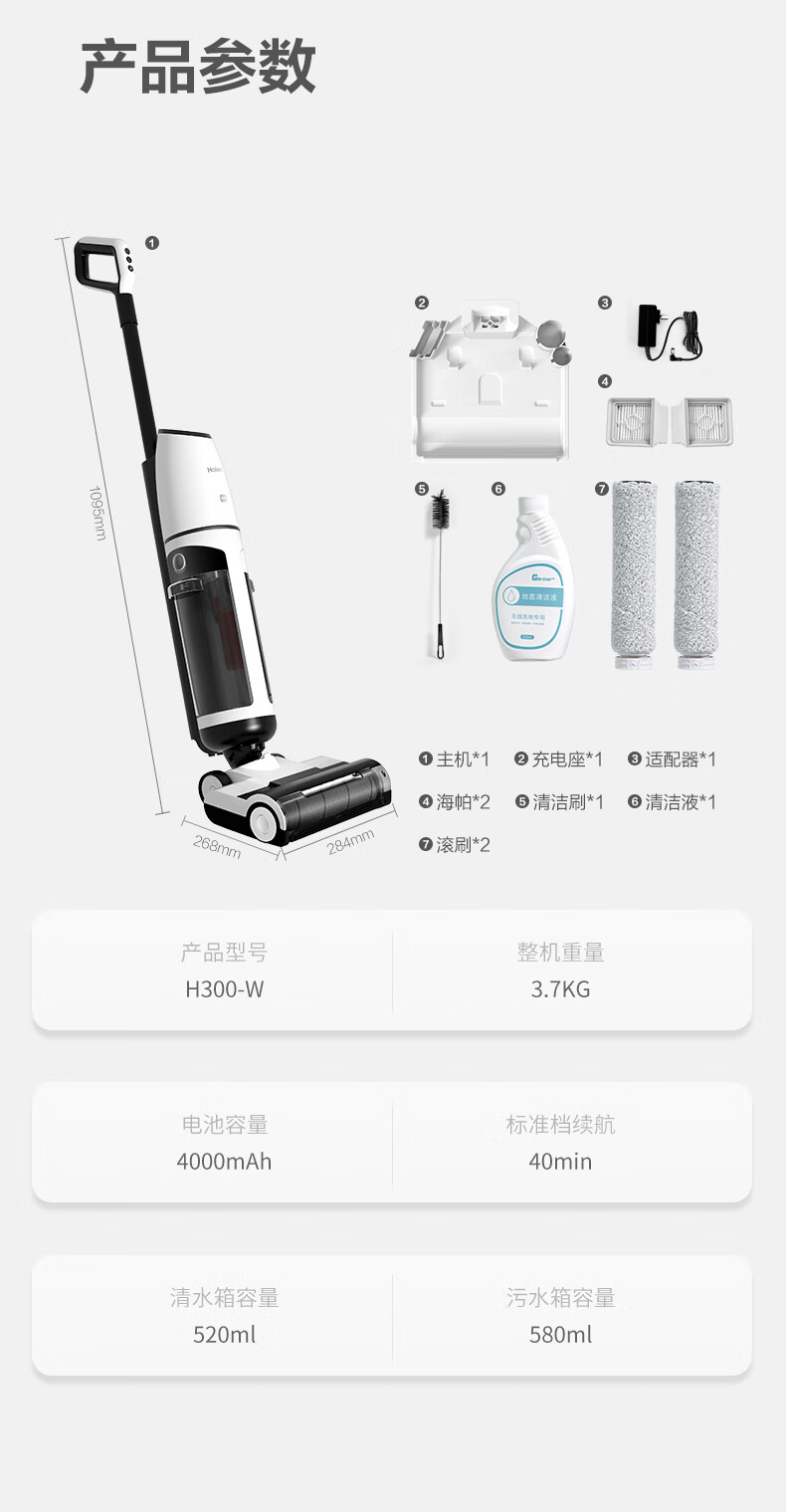 海尔全自动吸拖洗一体机 H300-W