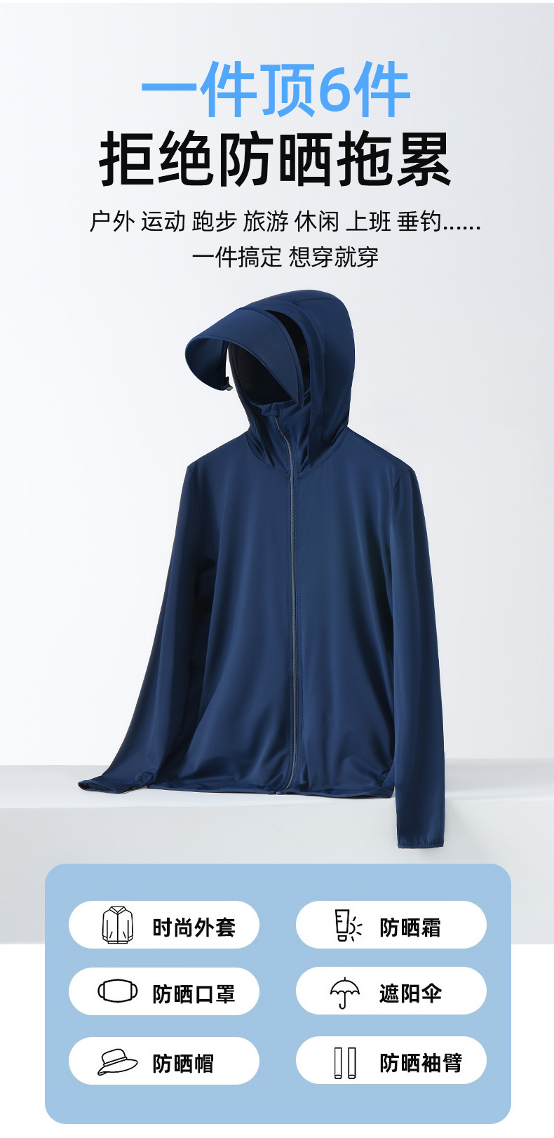 冰丝原纱upf50+ 升级黑胶帽檐冰感防晒服 户外防晒衣男 夏季防紫外线