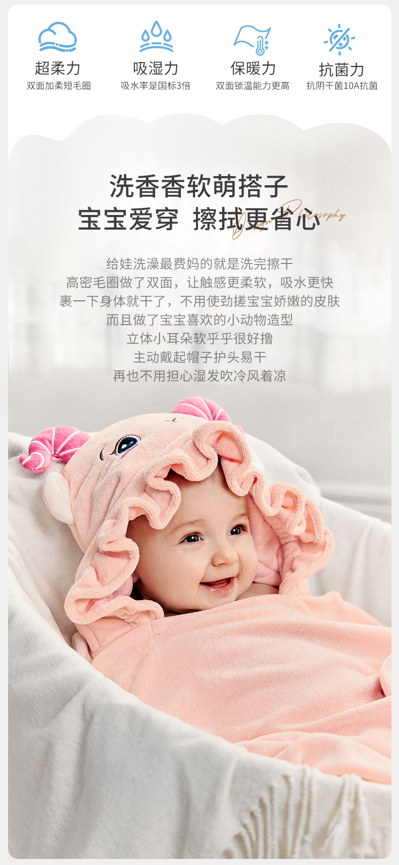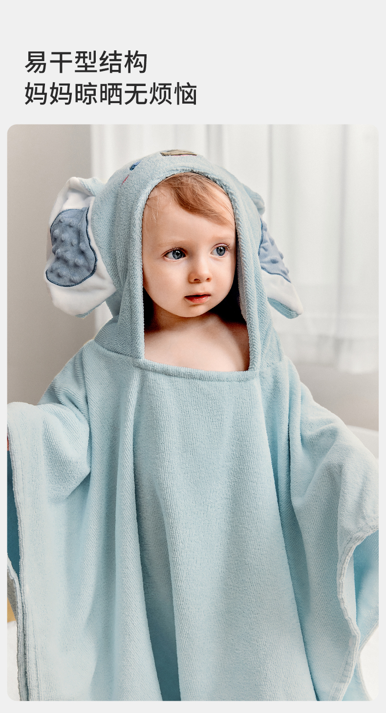【洗浴用品】嫚熙儿童浴巾斗篷浴袍可穿式新生儿洗澡浴巾婴儿专用吸水速干