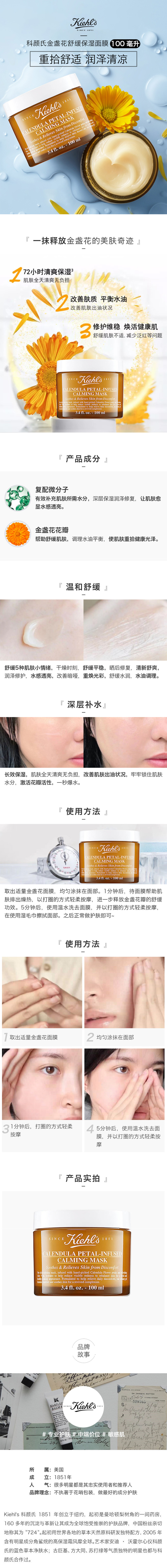 科颜氏 金盏花舒缓保湿面膜100ml 补水保湿护肤品