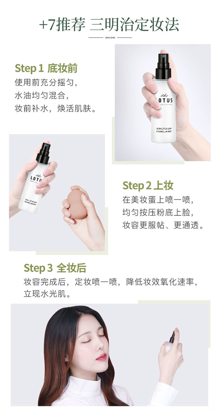 妆后喷一喷,可雾化妆容,喷完妆面更持久,不容易氧化暗沉!
