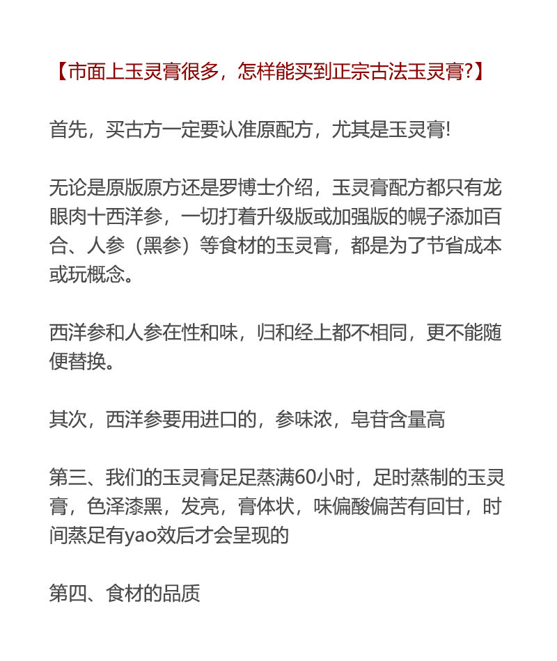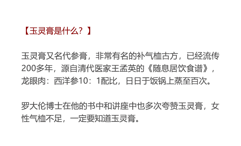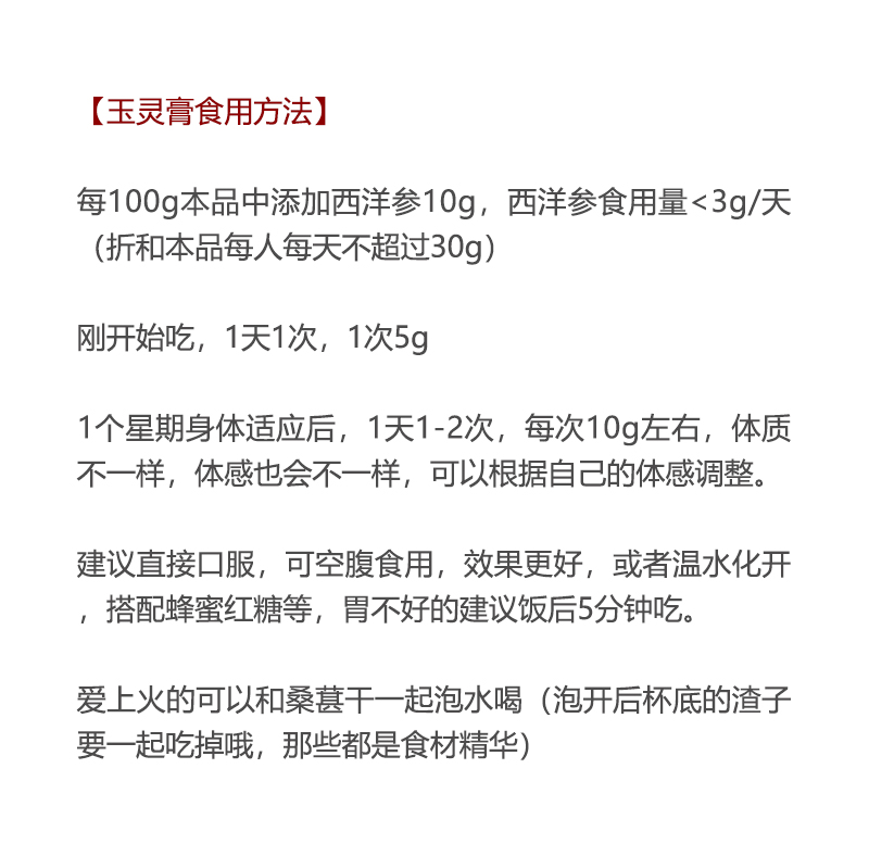 《梦娴订制古方玉灵膏》真材实料60小时足时蒸制/90%高州龙眼肉+10%进口西洋参添加量280g/瓶