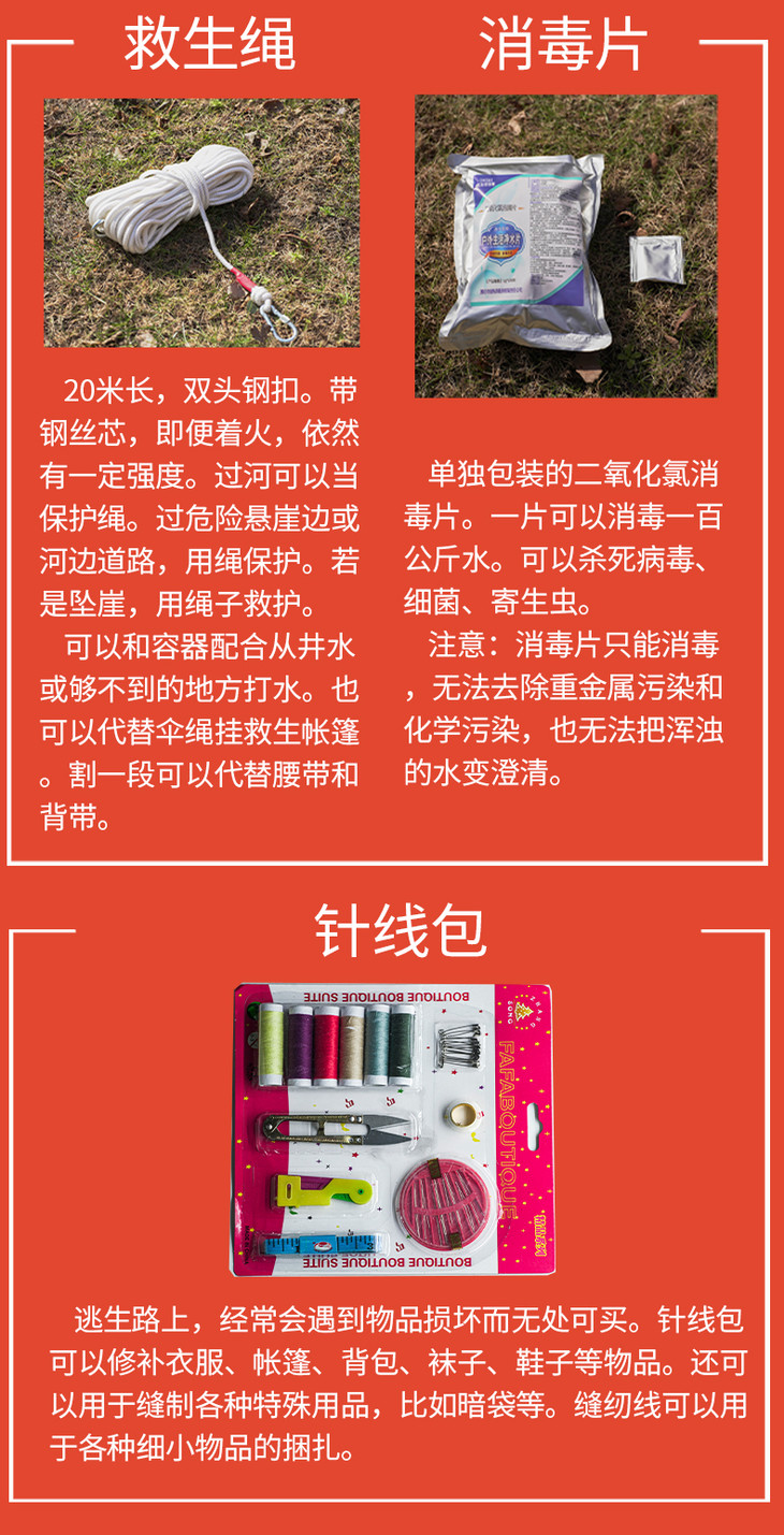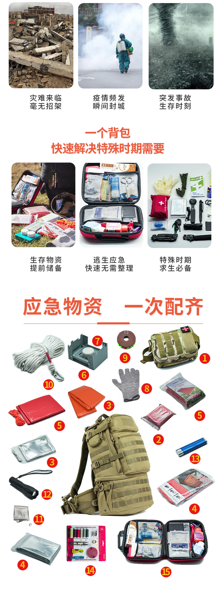 (七折清仓)自选户外应急逃生背包急救包工具包(不带净水片)