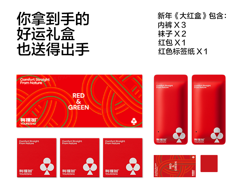 有棵树新年本命年女士内裤袜子秋冬红礼盒-U3068