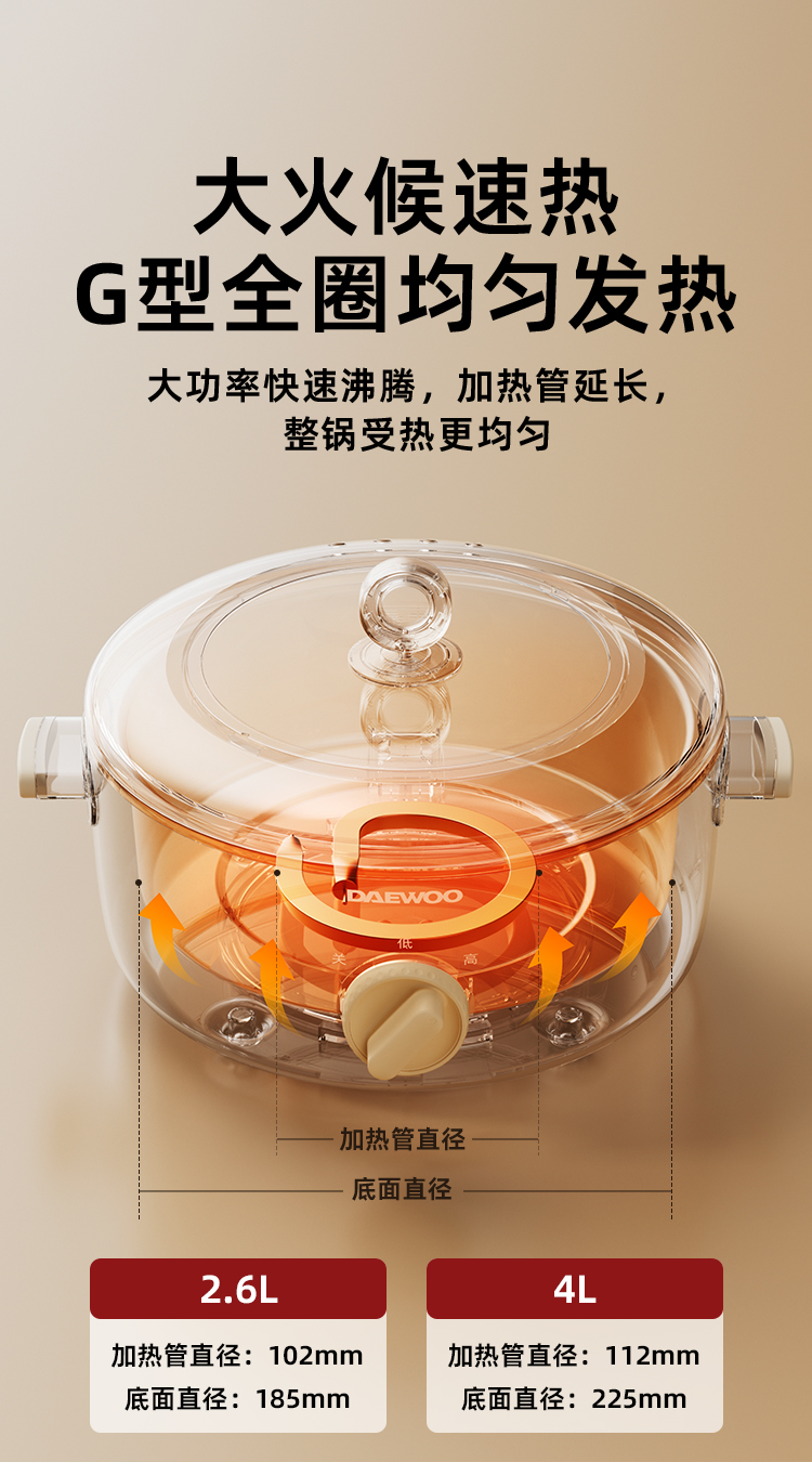 【一锅畅聚】大宇电火锅家用一体锅多功能大容量炒菜煎炸烤不粘电热锅