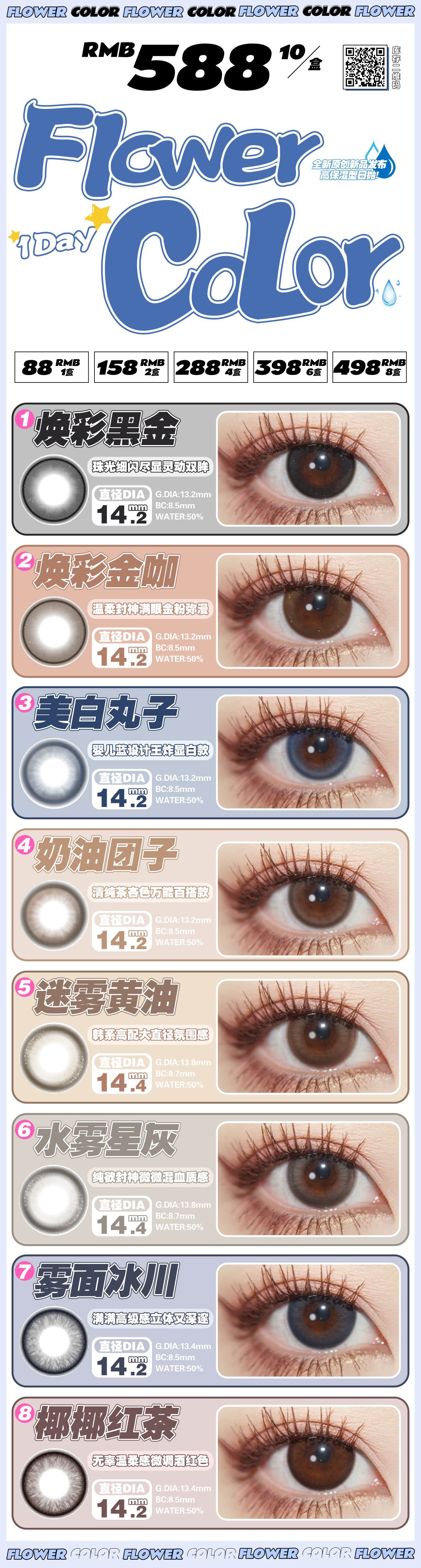 【日抛活动】FlowerColor 88/盒 158/2盒 288/4盒 398/6盒任选 (0-800度 不含525/575)