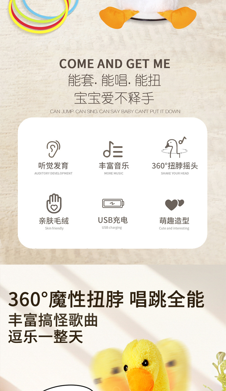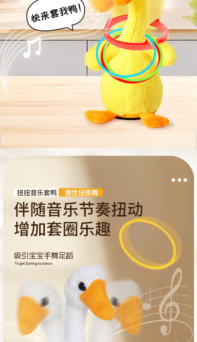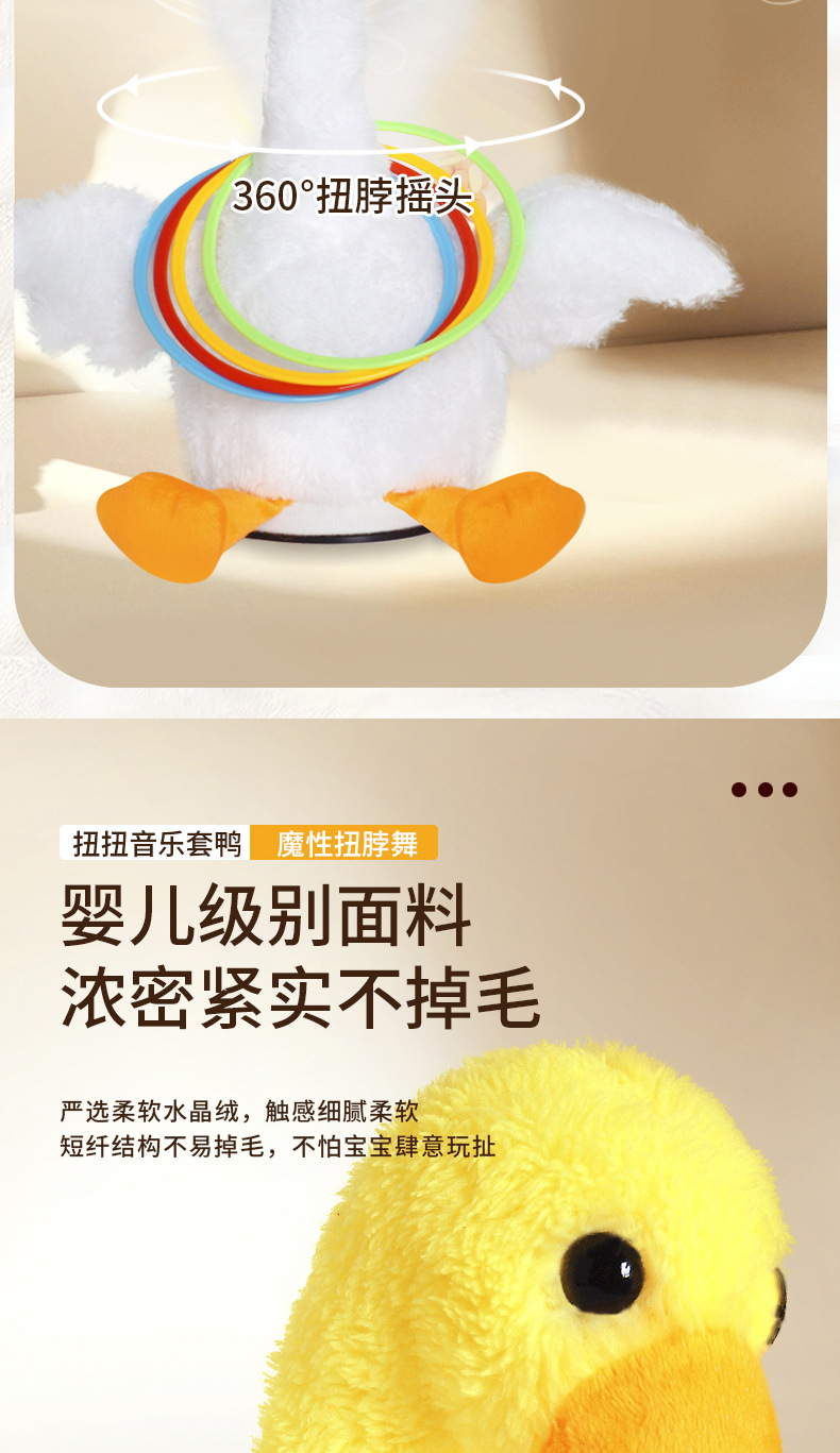 【快乐鸭!360°扭脖唱跳】魔性扭脖鸭逗趣十足,亲子互动欢乐时光,毛绒亲肤安全无忧,唱跳全能乐不停歇