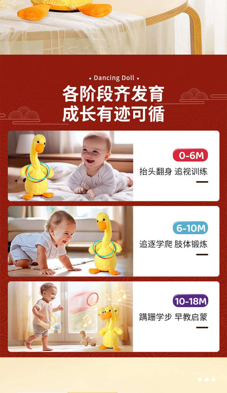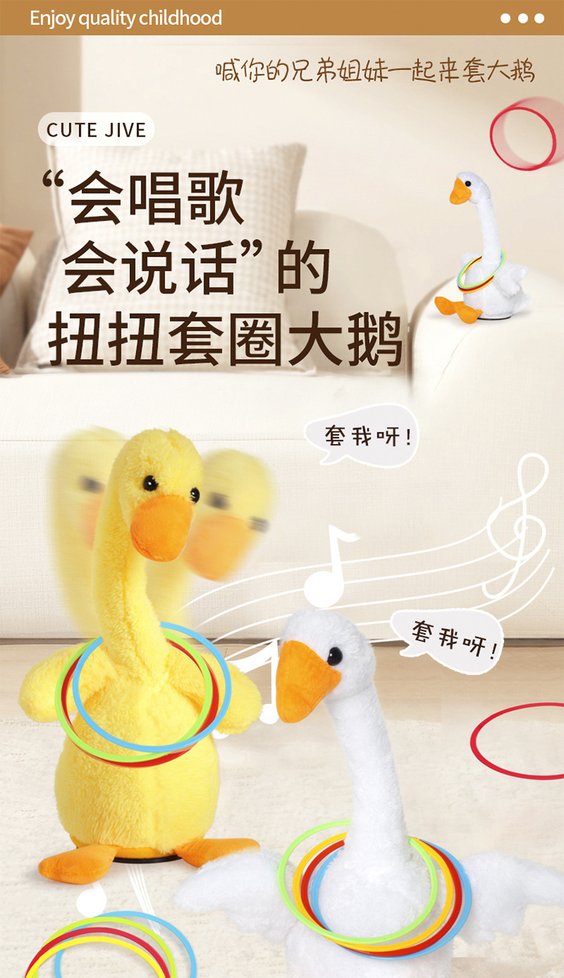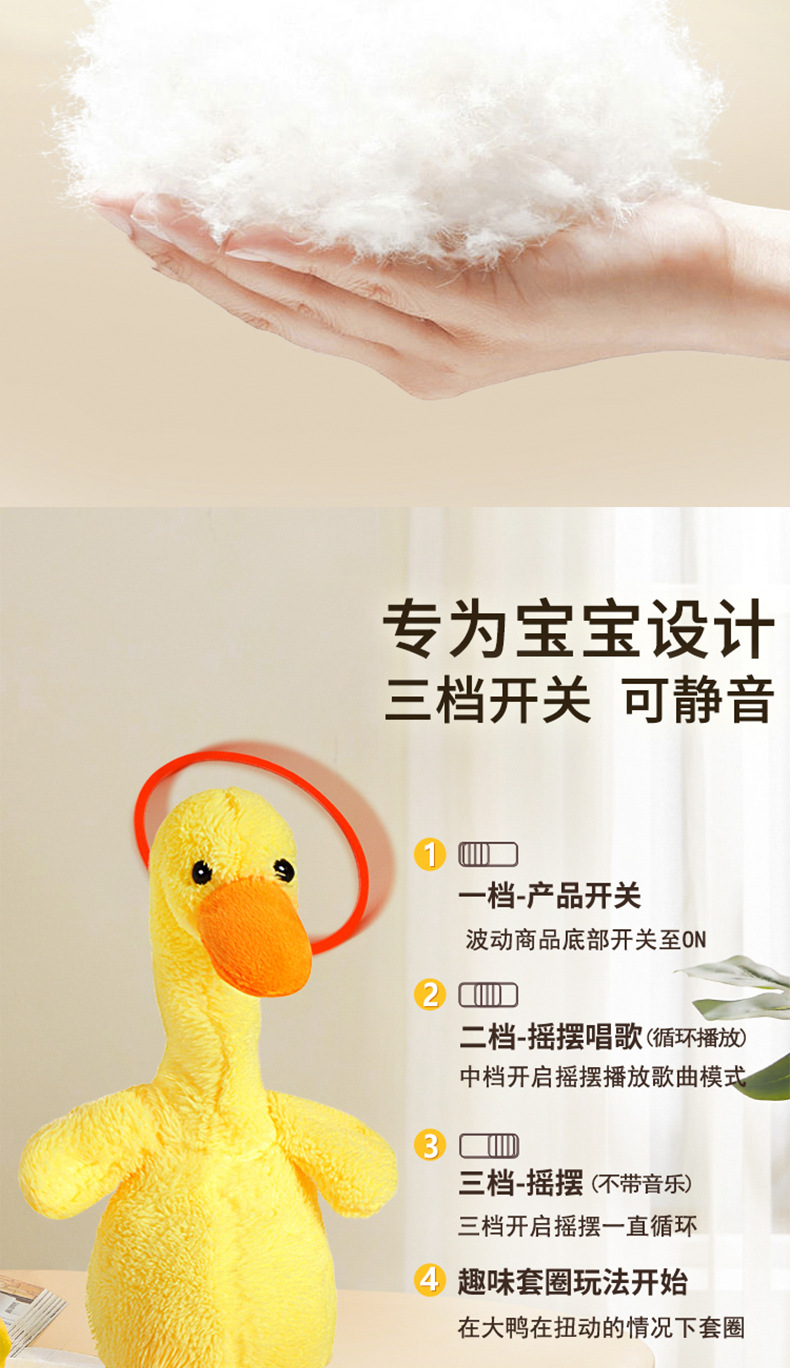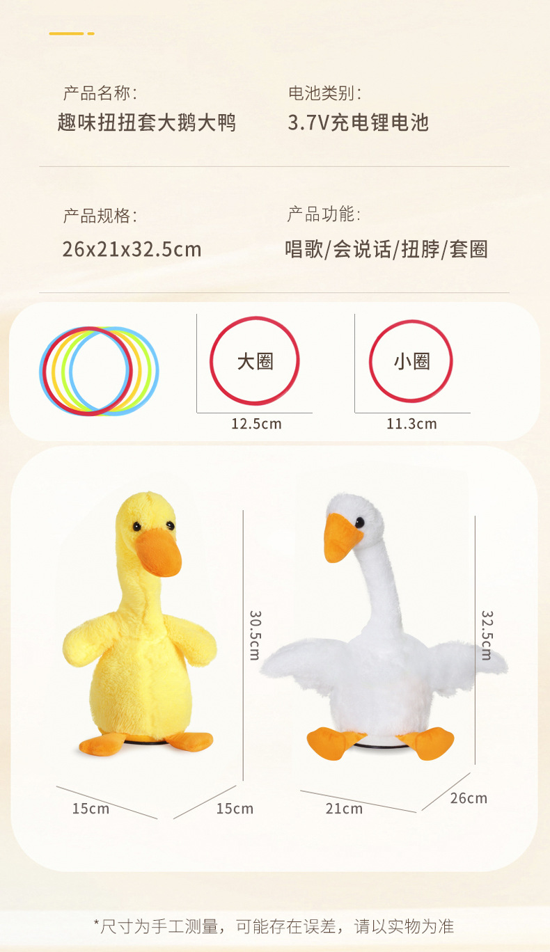 【快乐鸭!360°扭脖唱跳】魔性扭脖鸭逗趣十足,亲子互动欢乐时光,毛绒亲肤安全无忧,唱跳全能乐不停歇