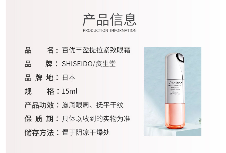 SHISEIDO 资生堂 百优丰盈提拉紧致眼霜 15ml 小钢炮 第三代 日本