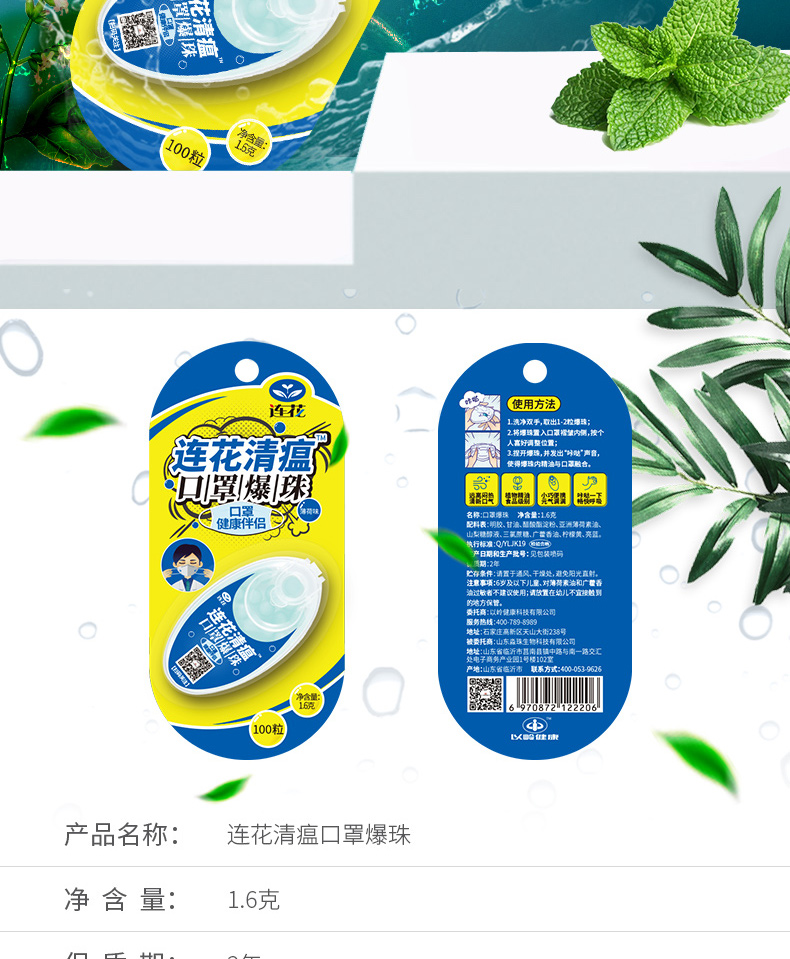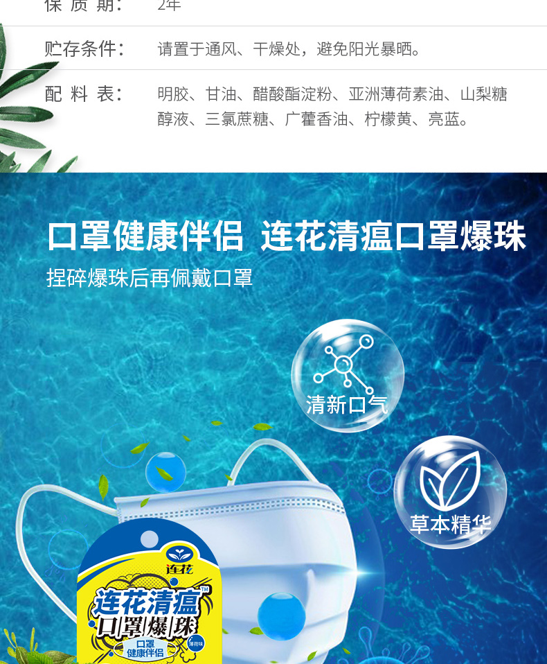 【神州租车专享】连花口罩爆珠(清新薄荷香型)100粒装