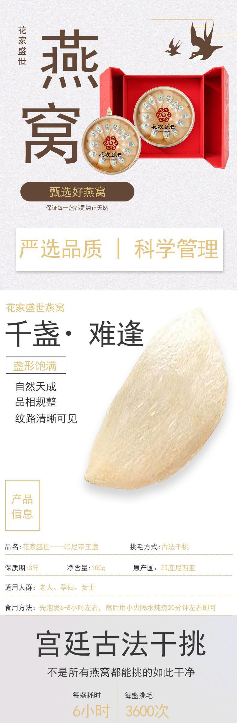 【自营】花家盛世 印尼帝王盏 100g/盒规格 HJSSYW002