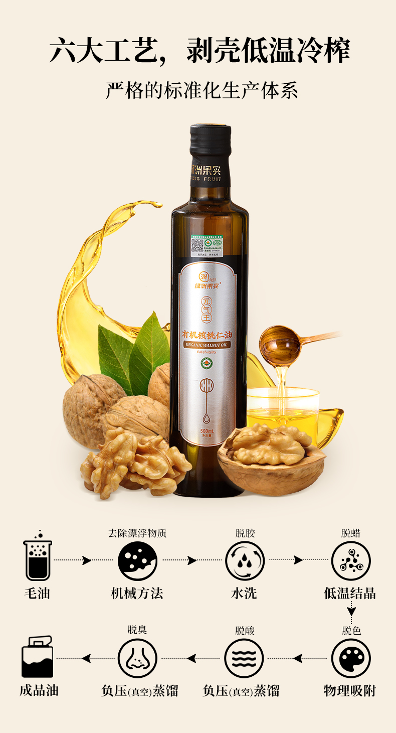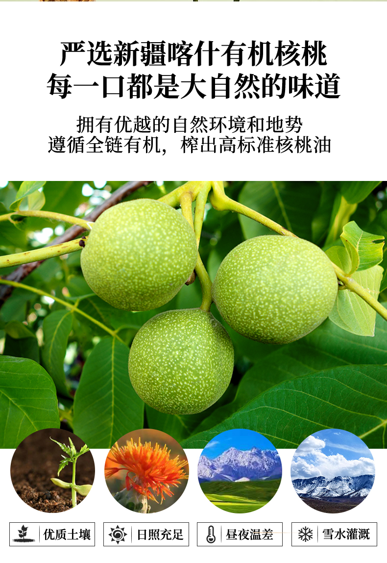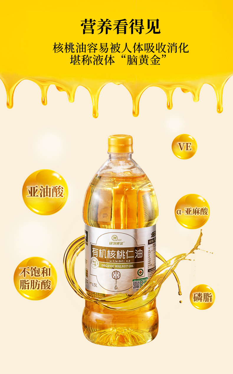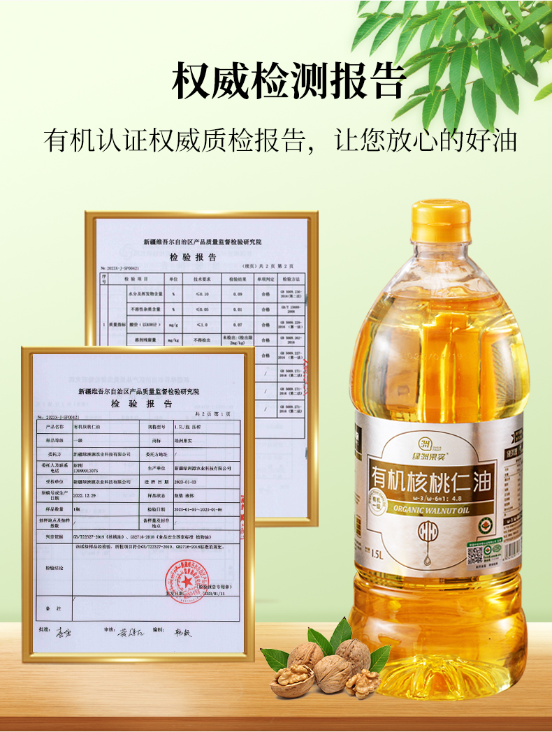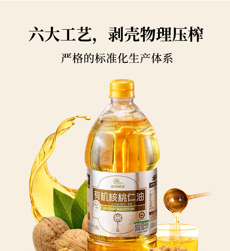 【自营】绿洲果实·有机核桃仁油1.5L/500ml