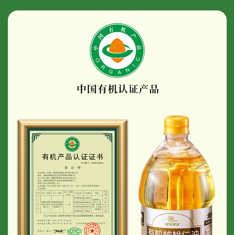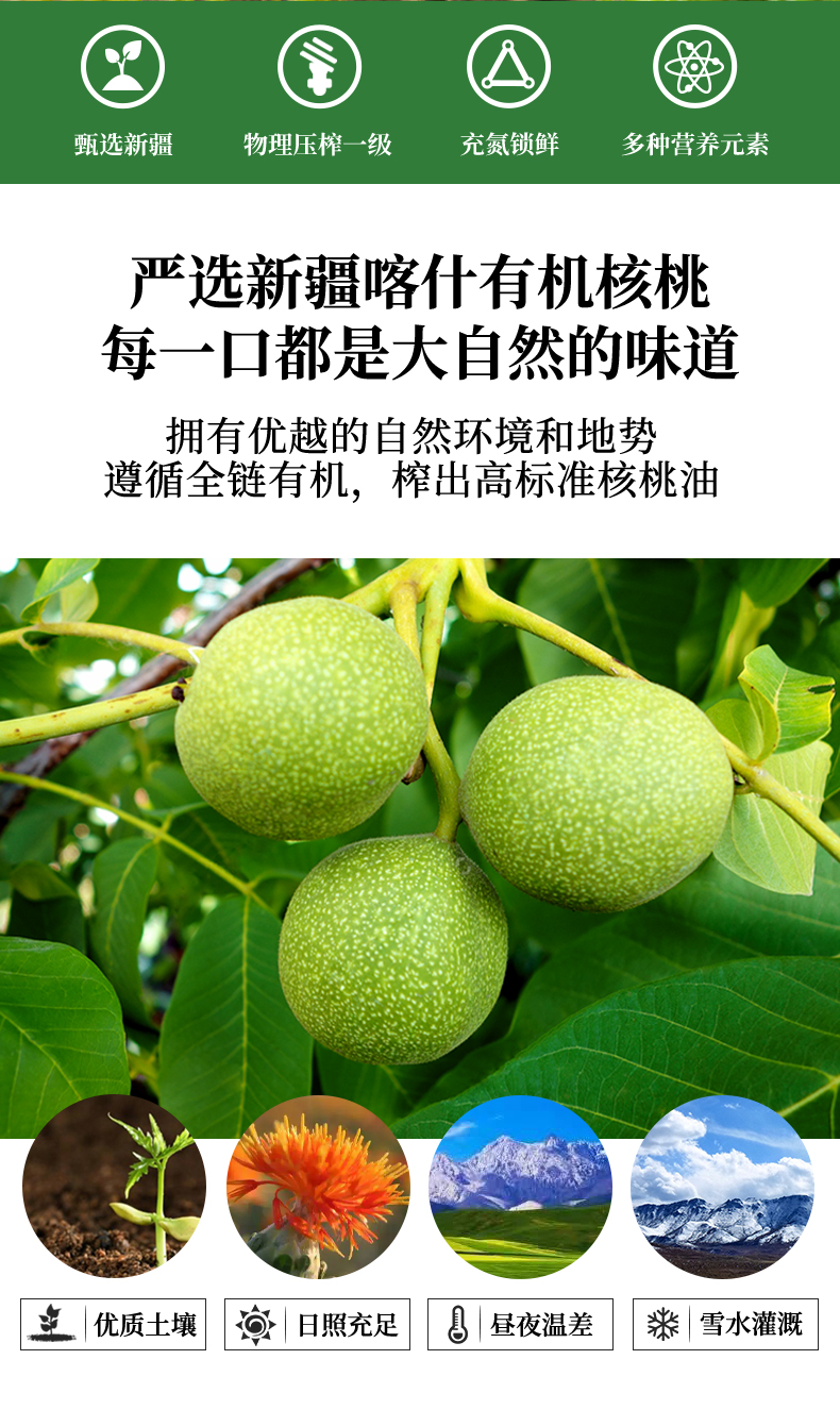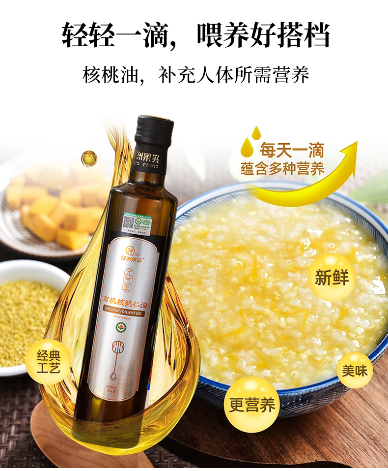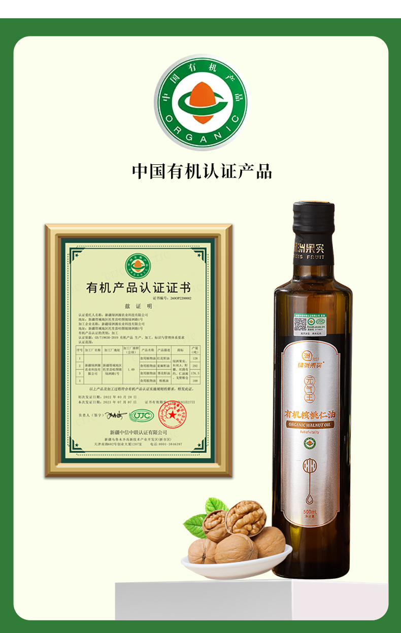 【自营】绿洲果实·有机核桃仁油1.5L/500ml