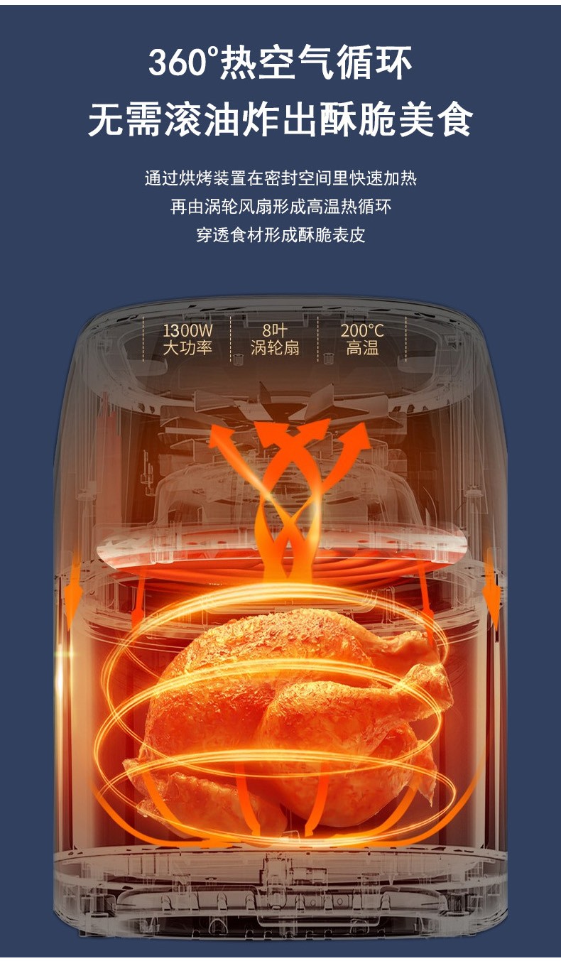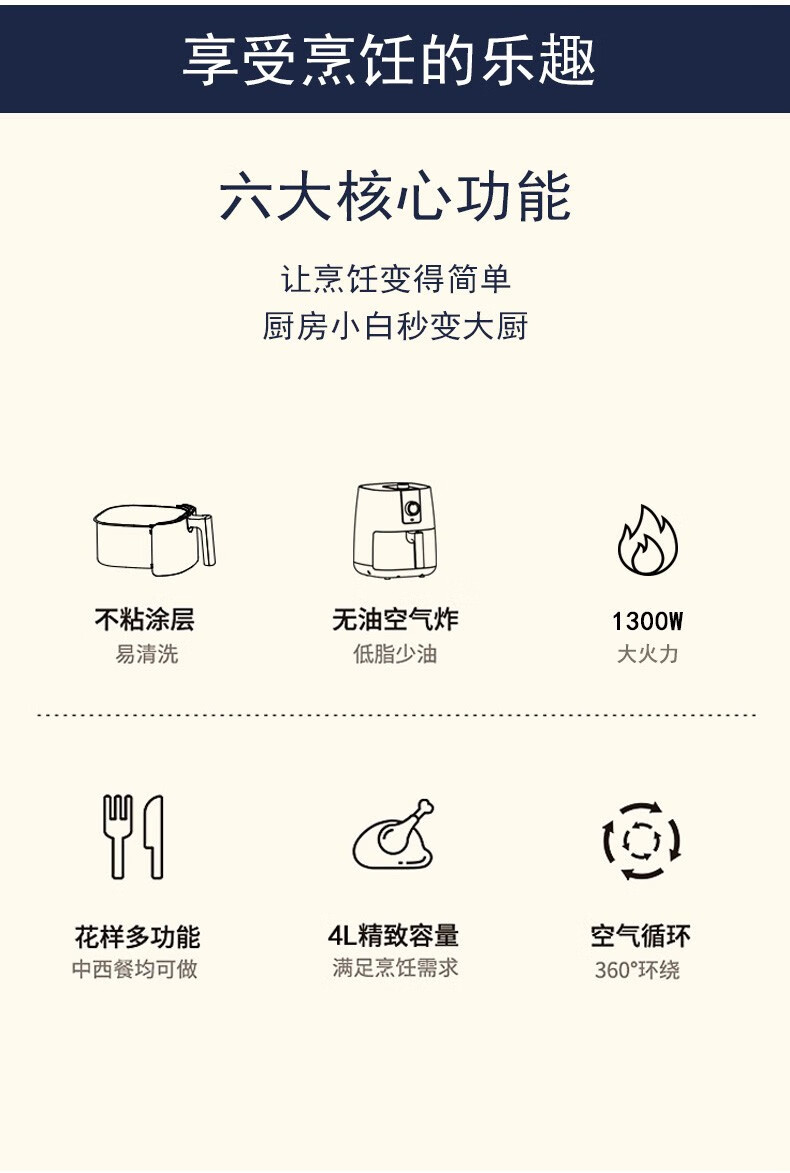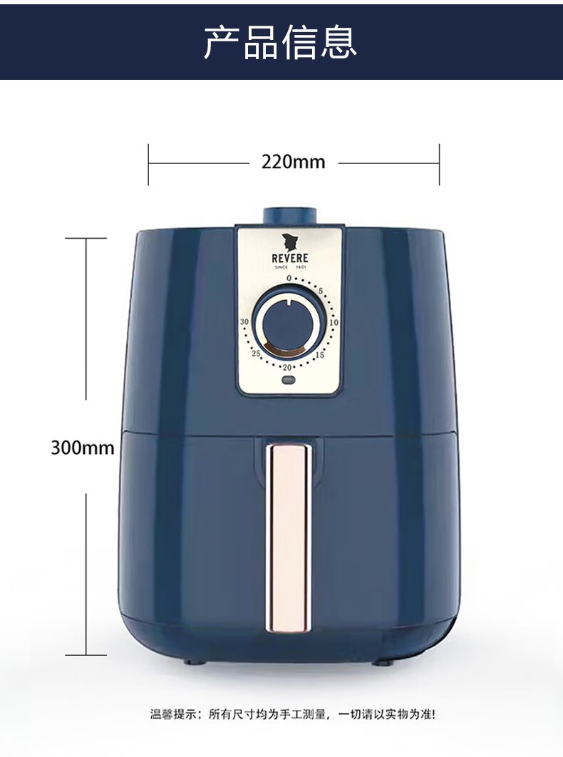 【小家电】REVERE家用智能4L空气炸锅RES-KJ-05B/YK HF