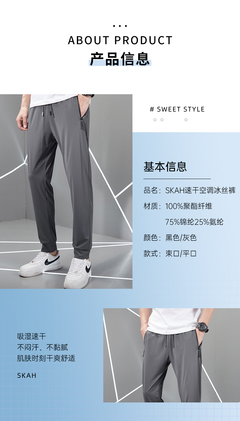【会降温的“空调裤”】SKAH速干空调冰丝裤 凉感科技冰丝面料 吸湿速干 不闷汗不黏腻 肌肤时刻干爽舒适 解放夏日闷热感.01