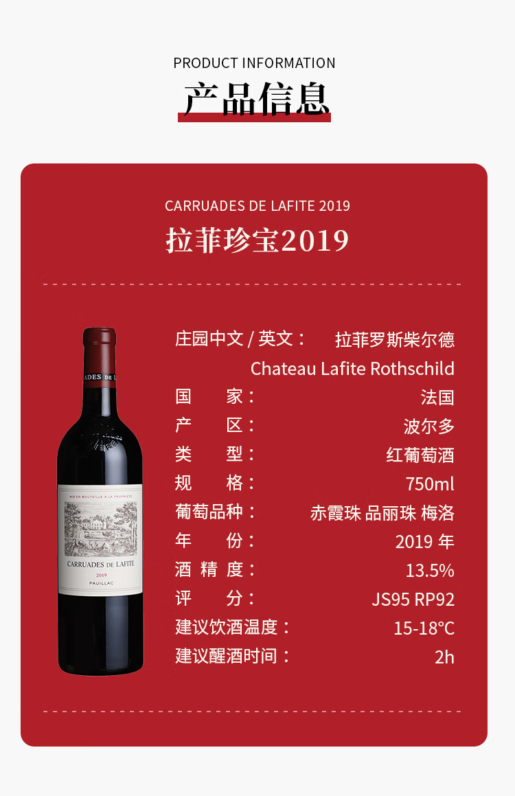 拉菲珍宝 拉菲庄园副牌2019年750ml 小拉菲