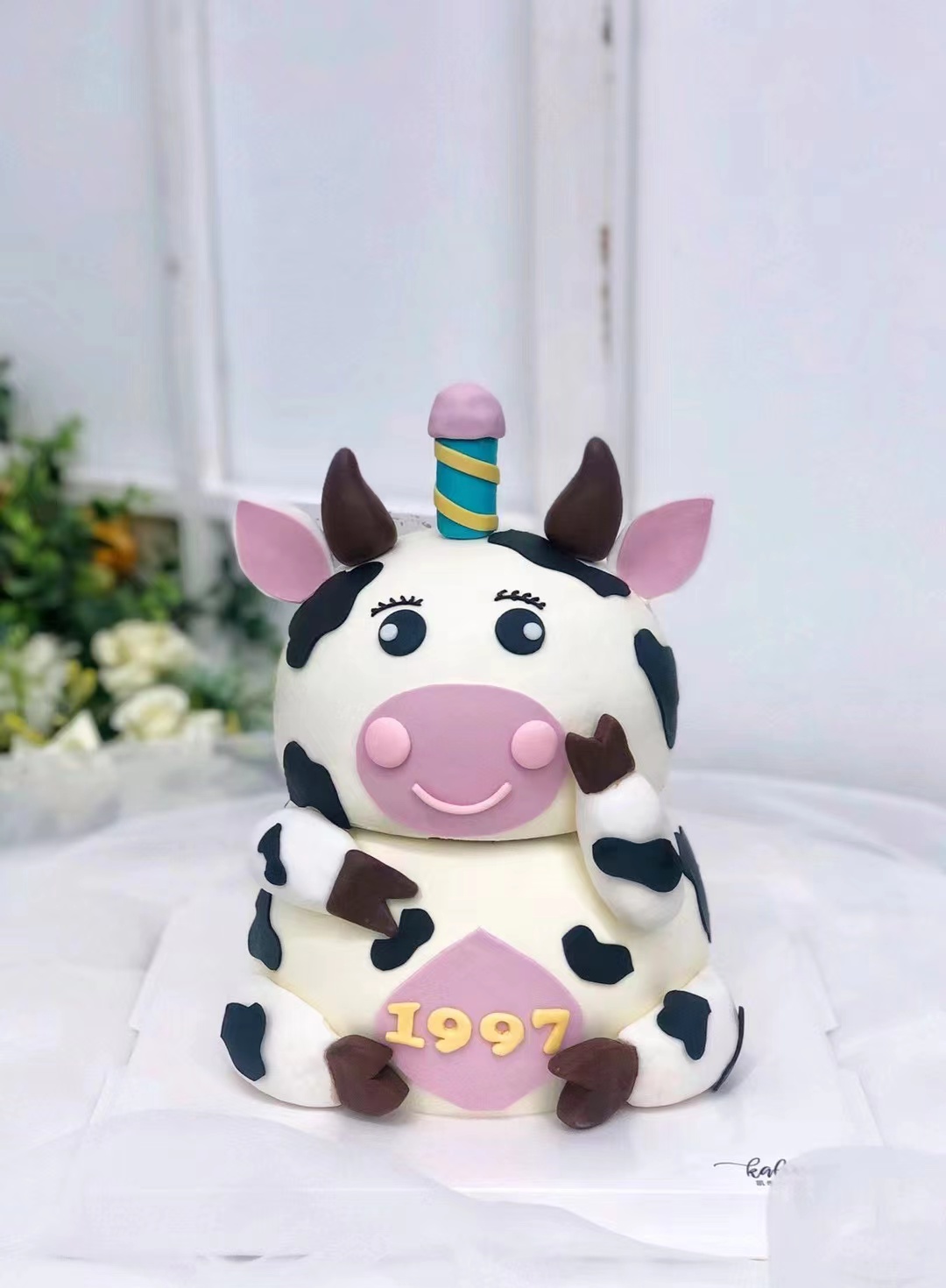 可爱小牛牛气冲天周岁蛋糕 商品缩略图0