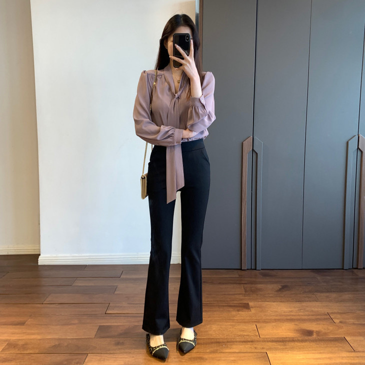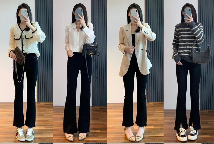 ✅ 微喇叭裤型上身显腿长显腿直,轻松get气质风~