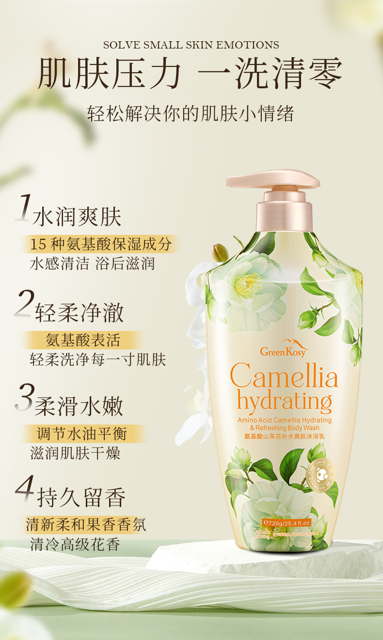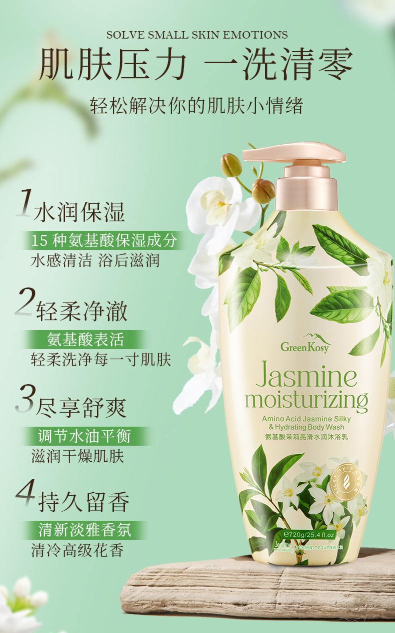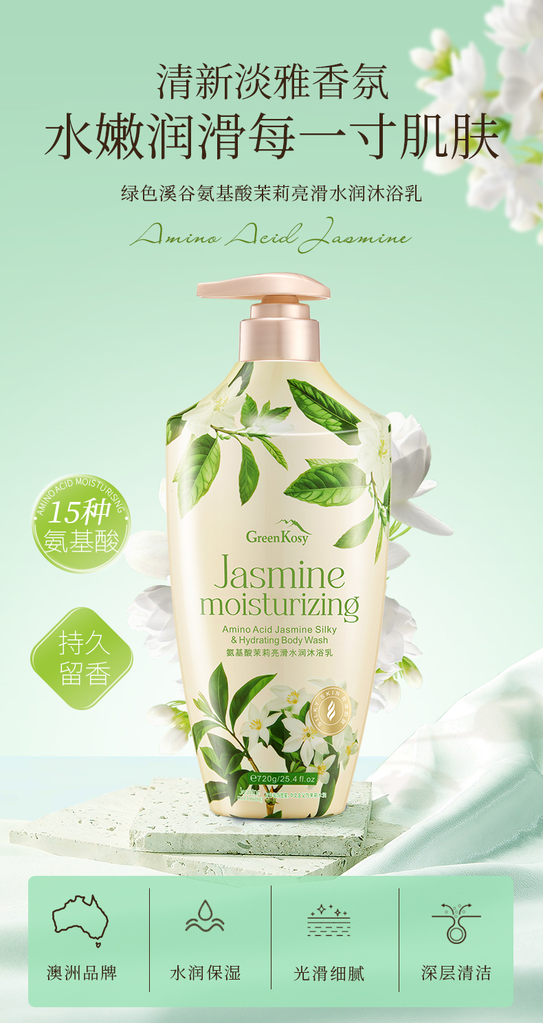 【品名】绿色溪谷氨基酸山茶花补水爽肤沐浴乳/氨基酸茉莉亮滑水润沐浴乳 【规格】720g/瓶 【发货时效】48-72小时,周末节假日顺延 |