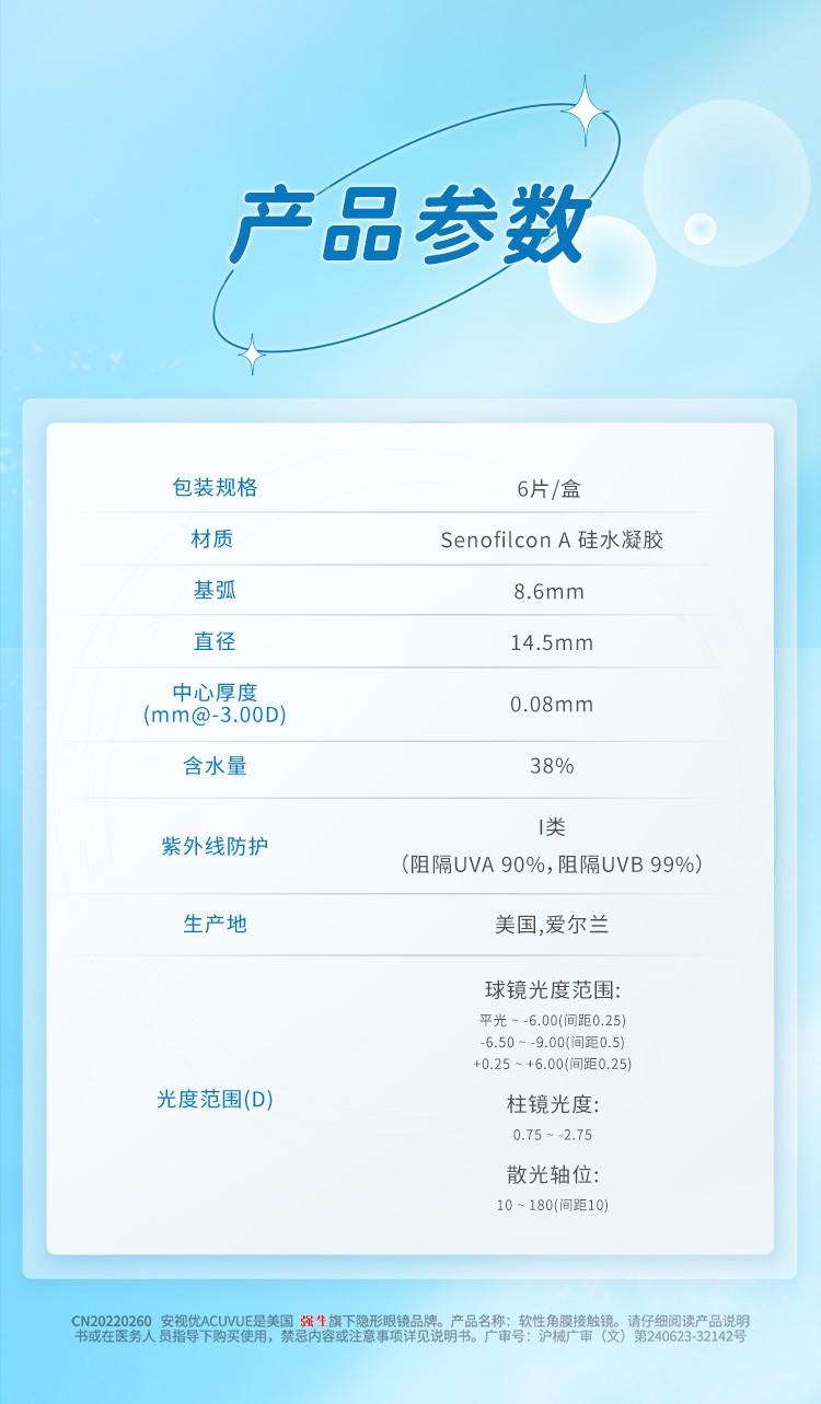 【2件7.5折 散光片定制】强生欧舒适散光两周抛六片装隐形眼镜(基弧8.8)