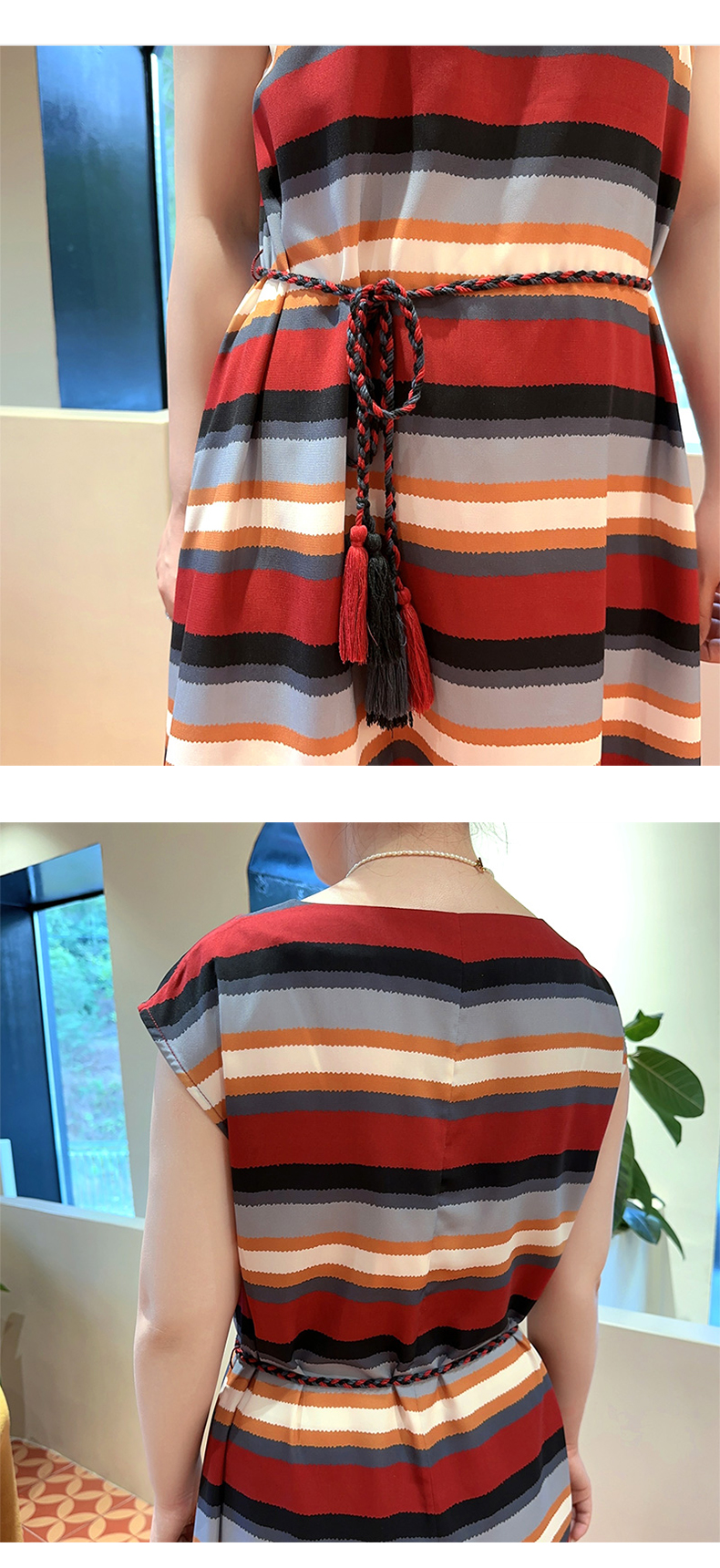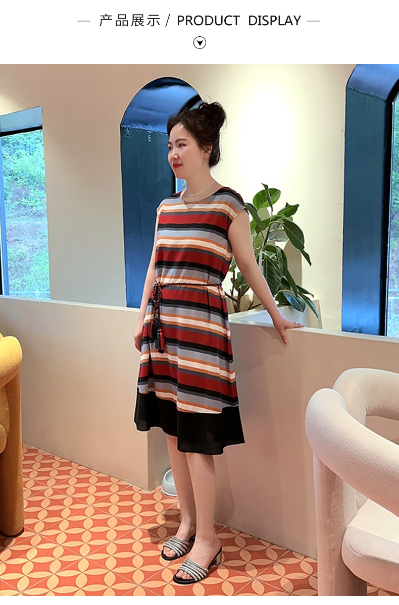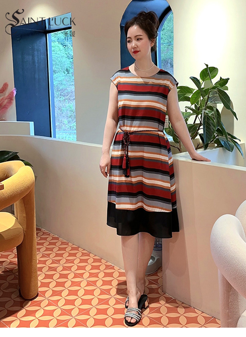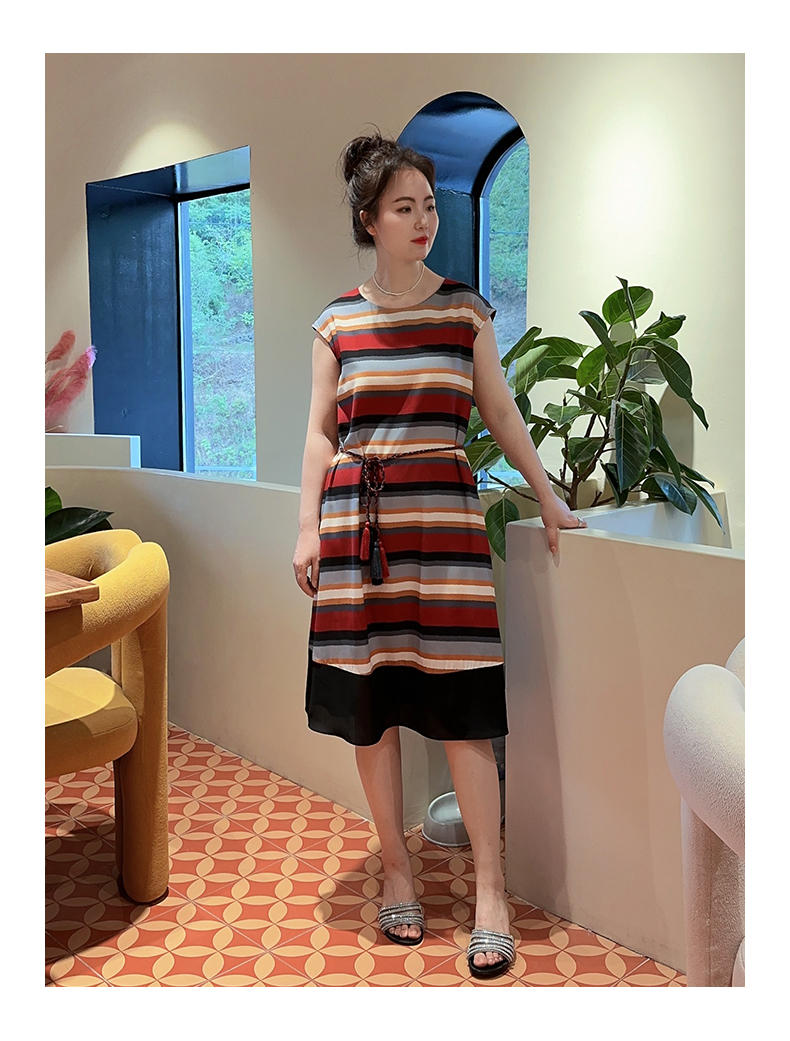 SAINT L’UCK/圣媛女装 度假风彩色条纹中长款收腰散摆连衣裙SA120L11