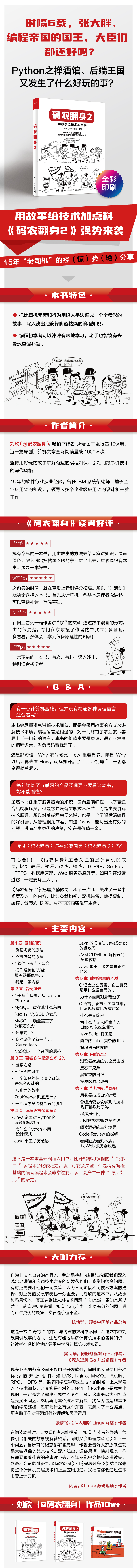 畅销书《码农翻身》*2部,用故事给技术加点料,讲解前后端开发、编程语言、网络安全、老司机经验分享,帮你理解技术起源和本质