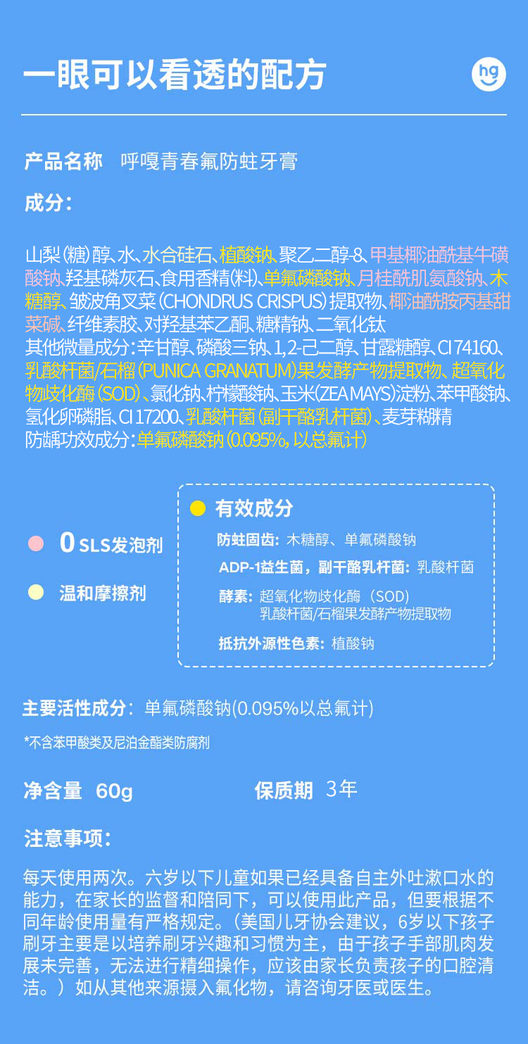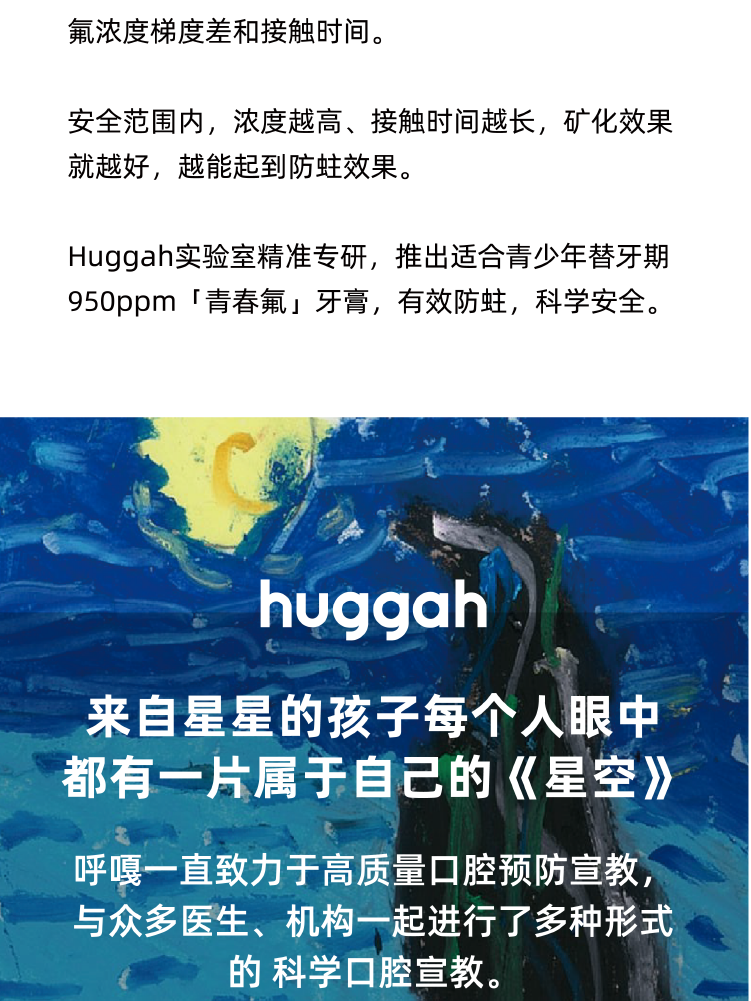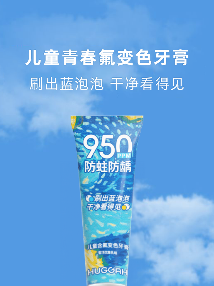呼嘎HUGGAH儿童含氟变色牙膏60g 含氟量950ppm 雪顶优酪乳味3-6-14岁