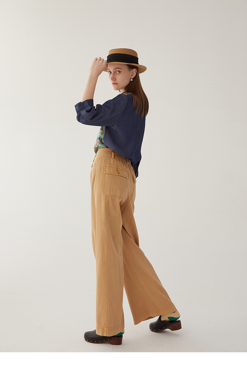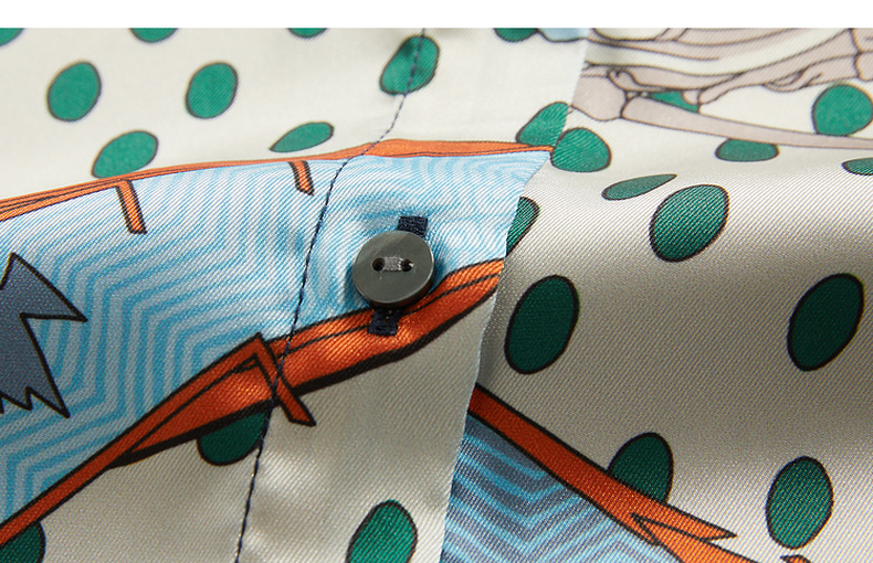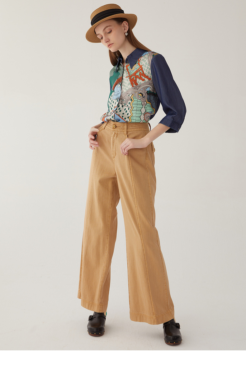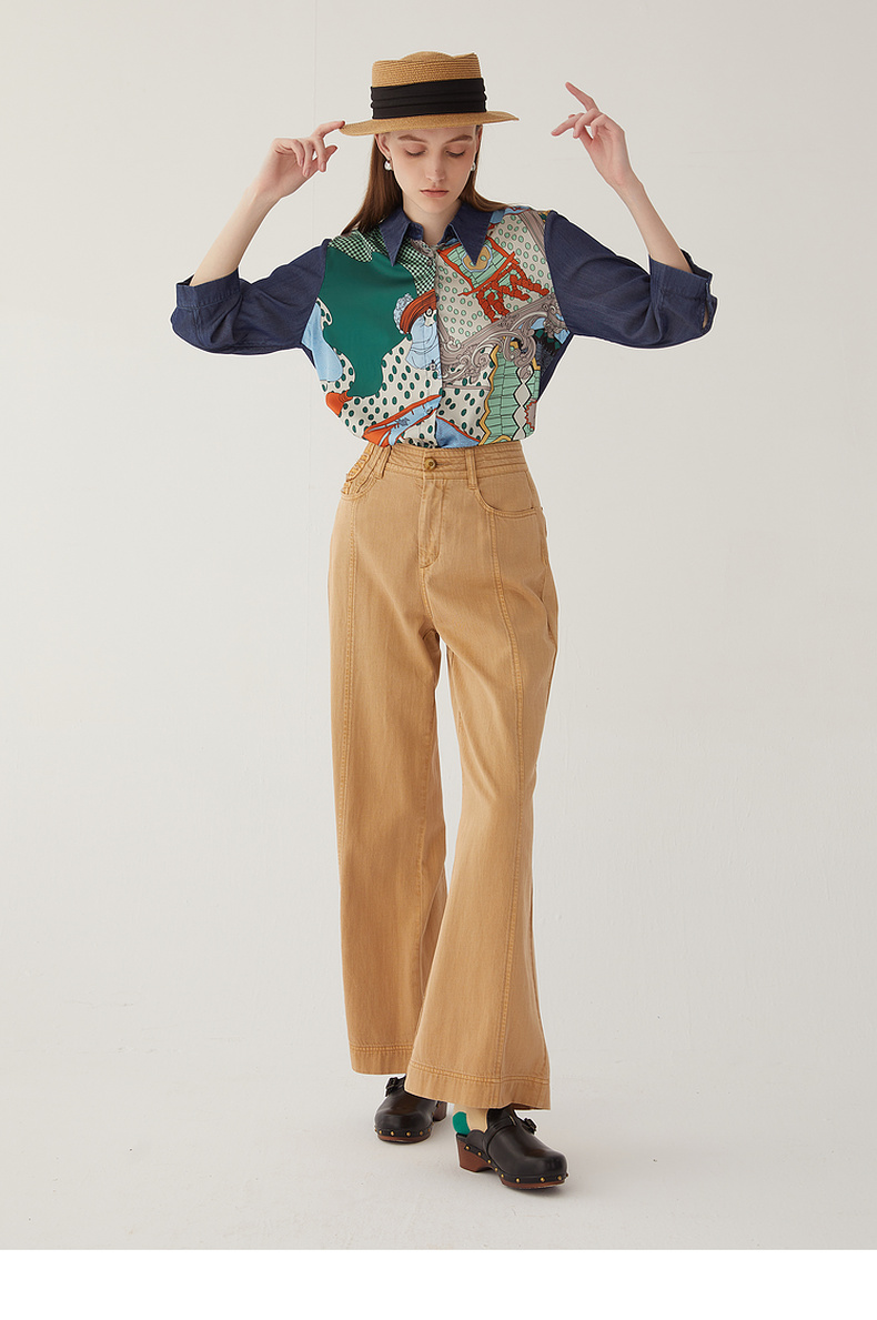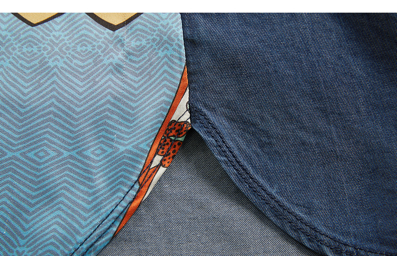 谜底牛仔拼接衬衫分袖女2024夏季新款复古印花亲肤衬衣246MC7072