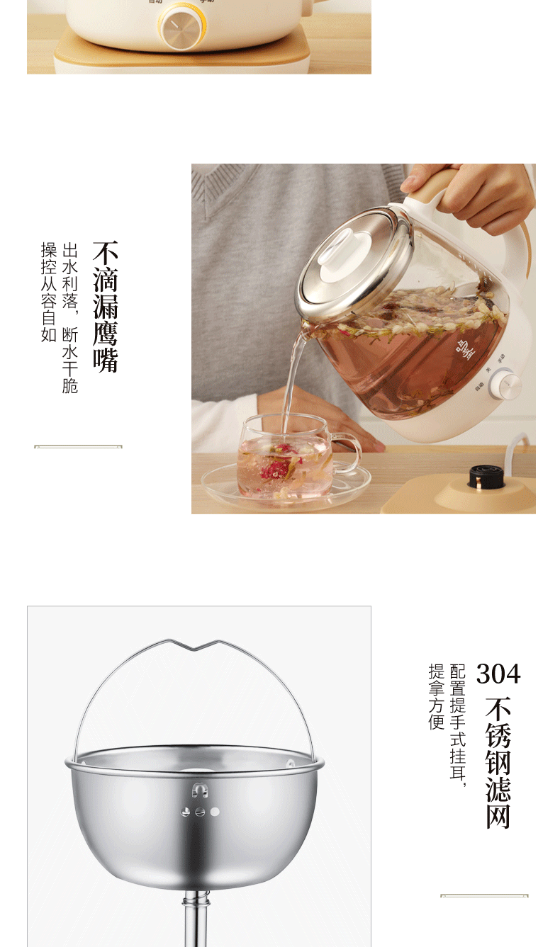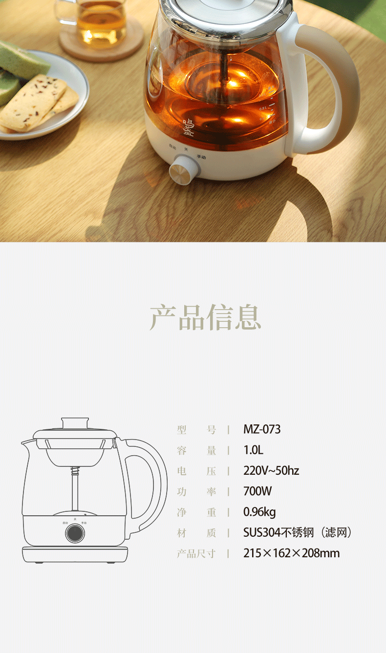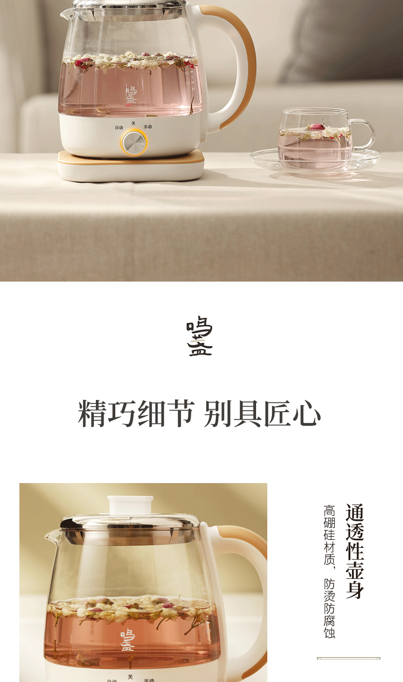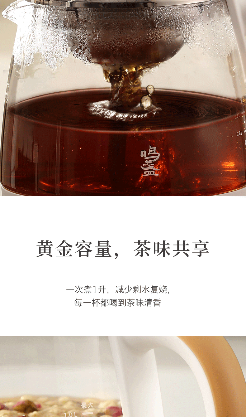 【小家电】鸣盏煮茶器玻璃养生壶智能一体煮茶器MZ-073 HF
