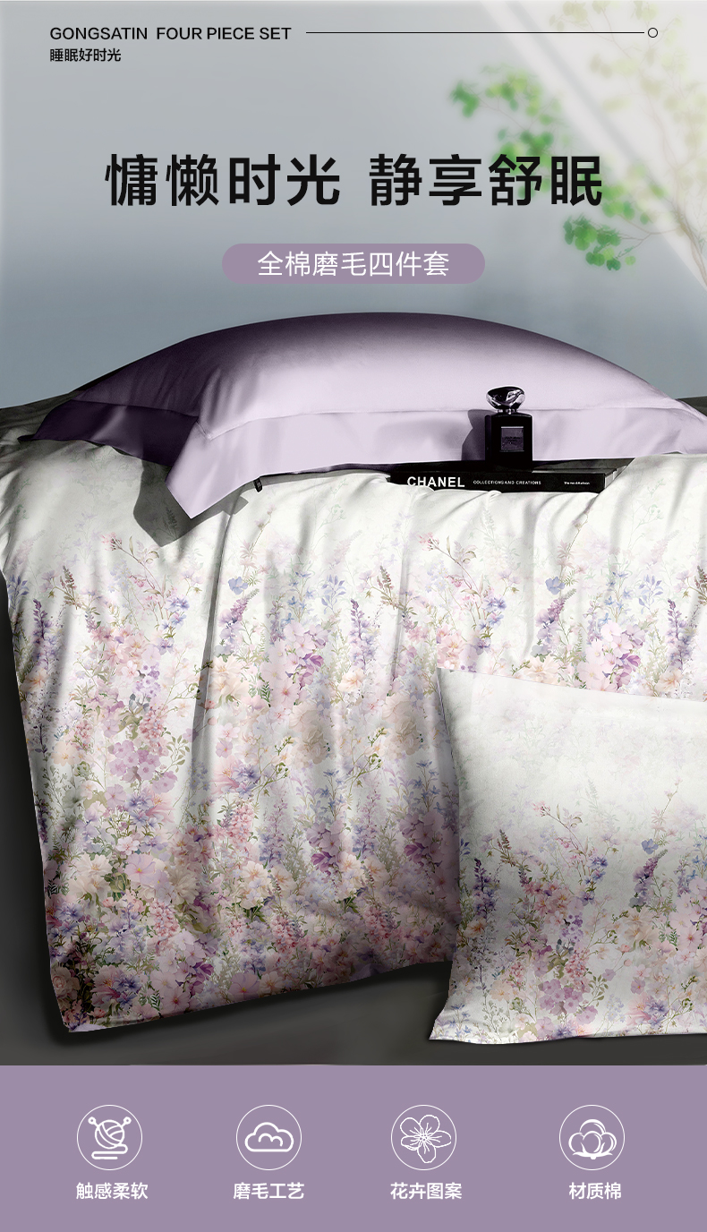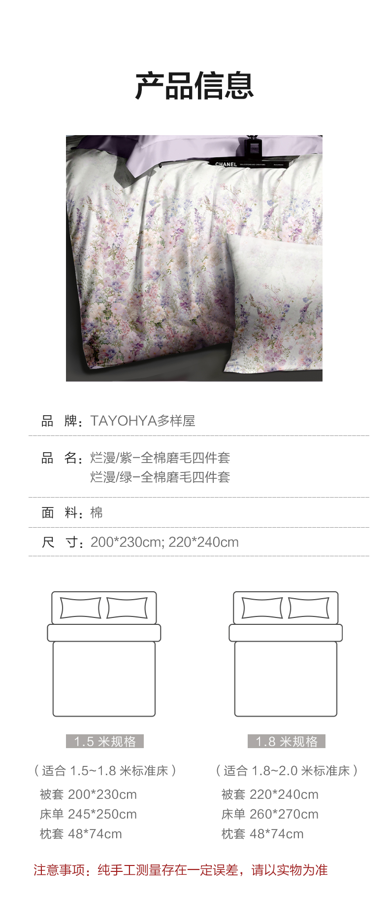 【多样屋专柜】多样屋烂漫/紫-全棉磨毛四件套床上用品/220*240cm