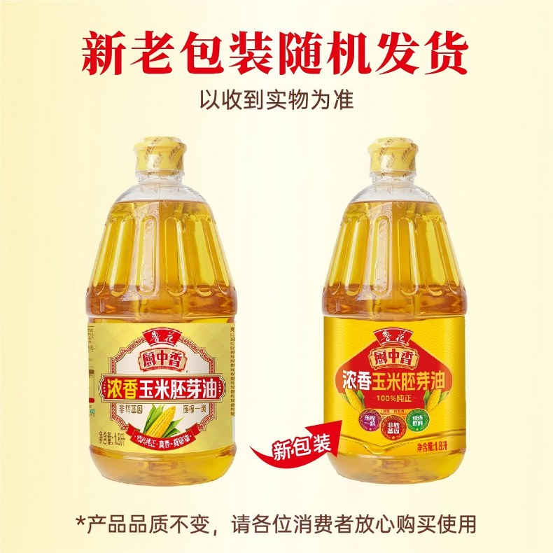 鲁花 厨中香浓香玉米胚芽油1.8L