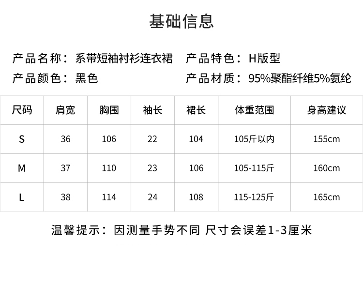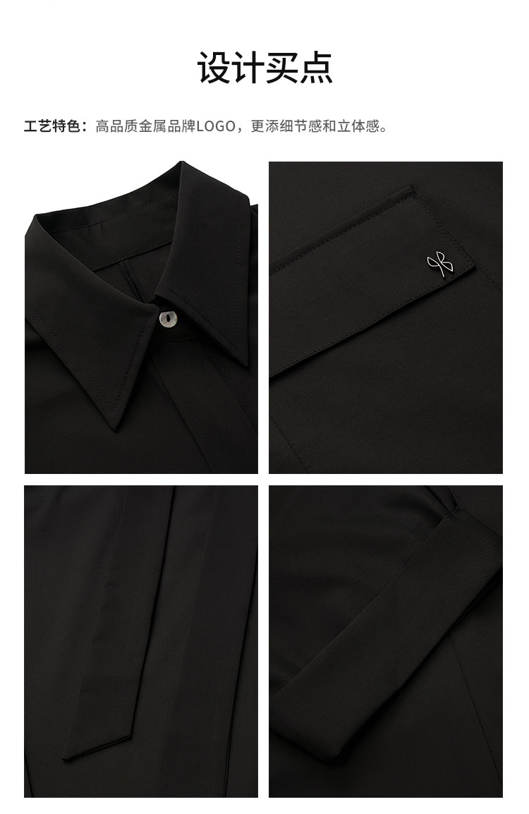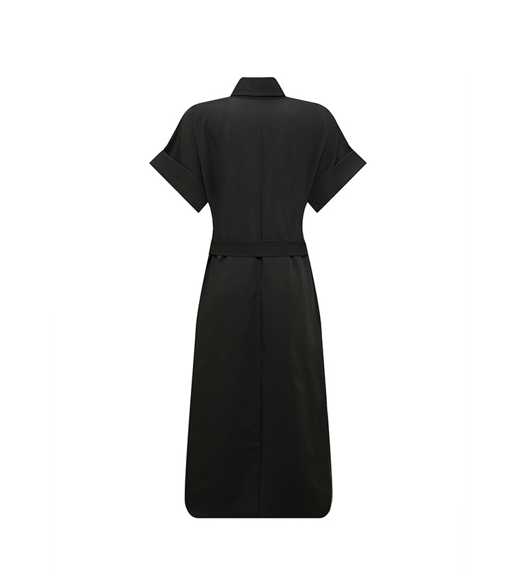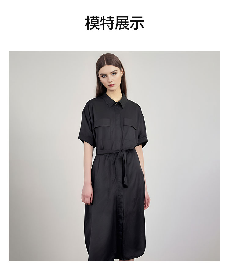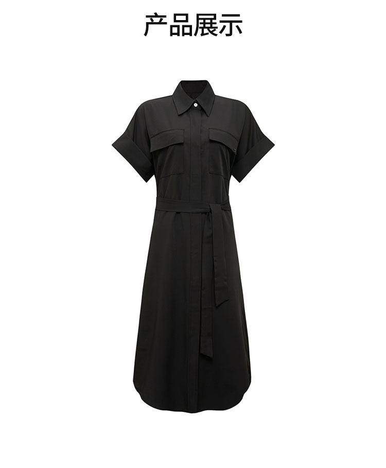 【2件9折】【Petit Bari】系带短袖衬衫连衣裙中长款H版型长裙衬衫裙
