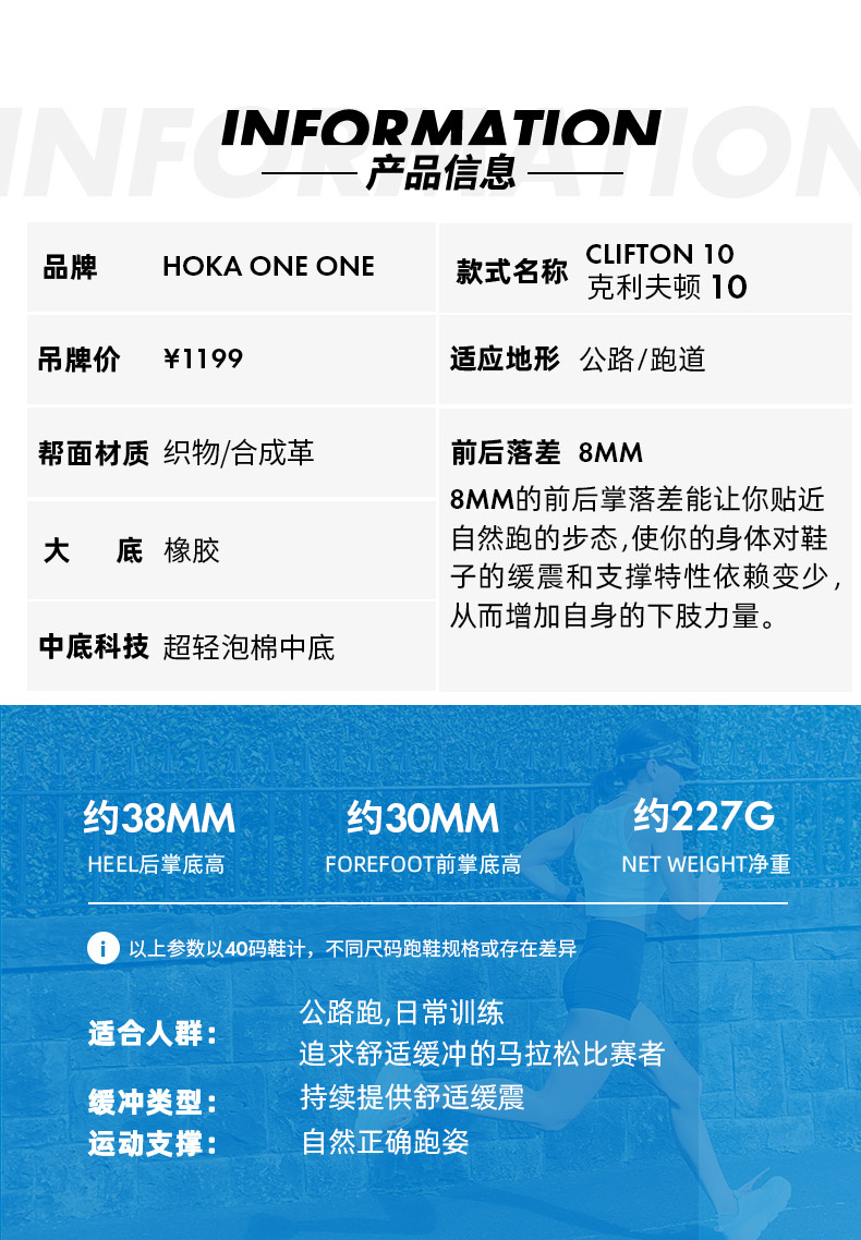 HOKA ONE ONE 女款 Clifton 10 克利夫顿10 缓震路跑鞋