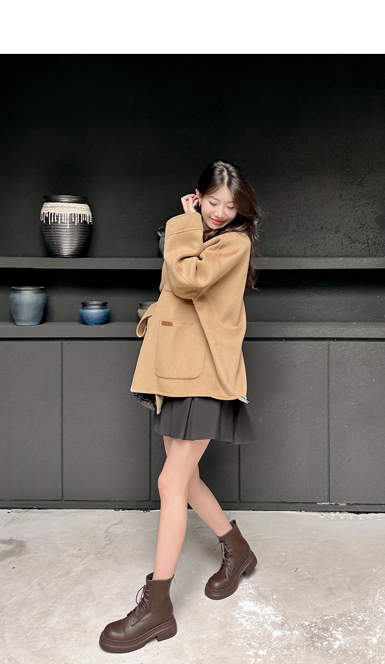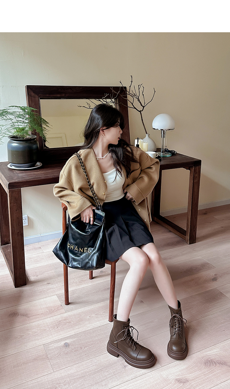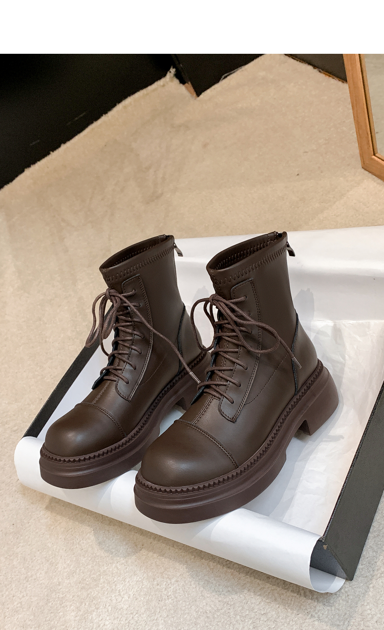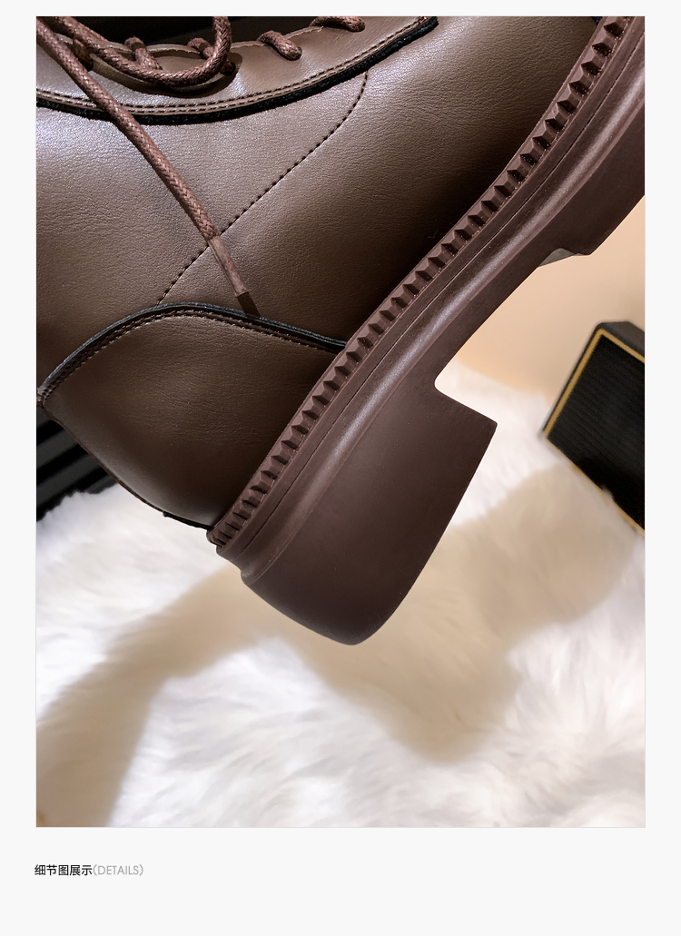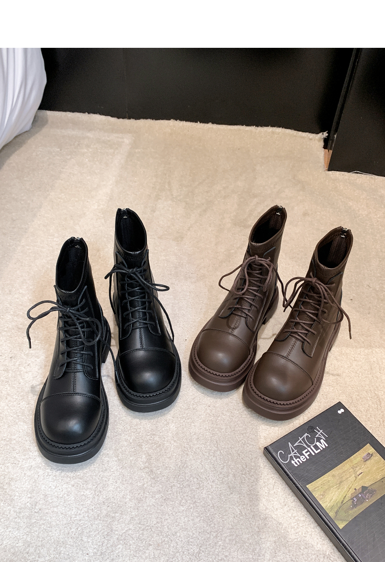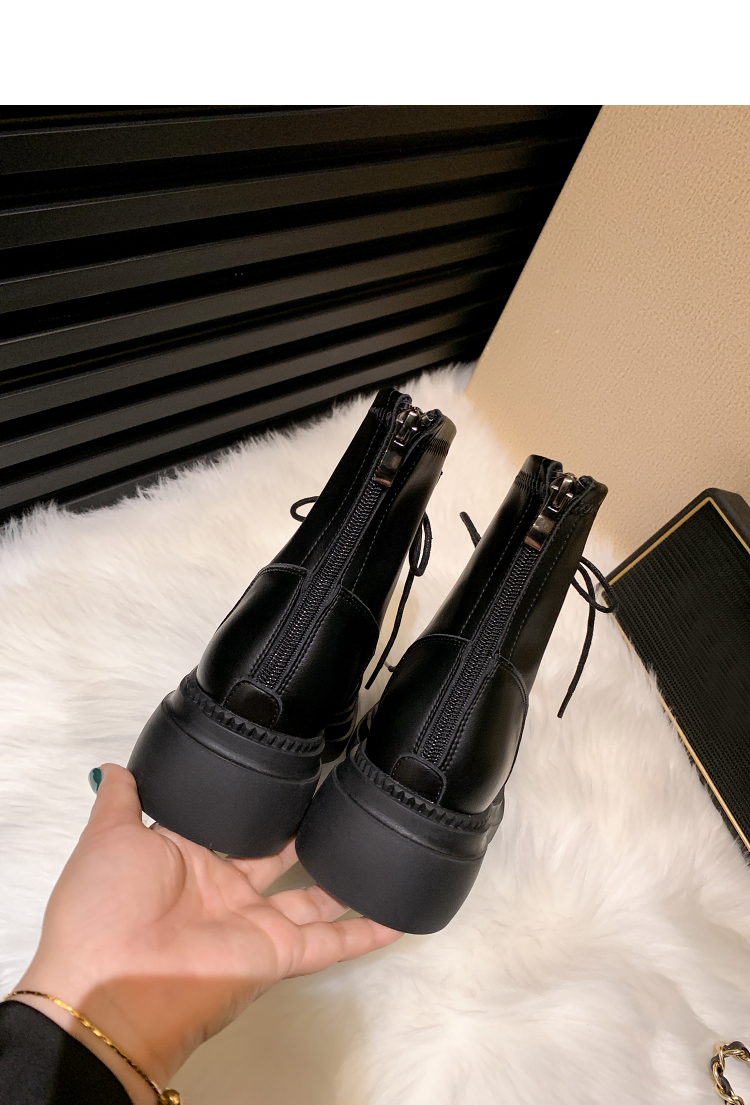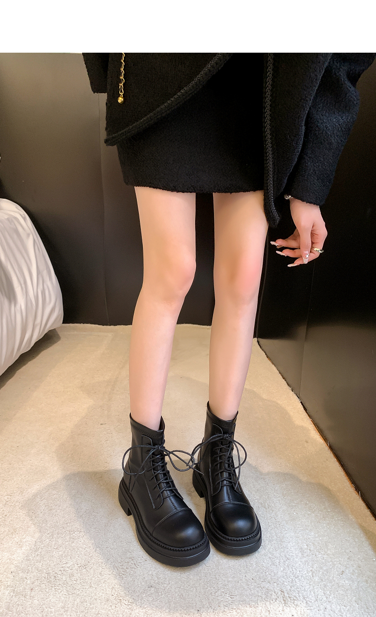 西遇显脚小马丁靴女新款秋冬英伦黑色百搭系带厚底短靴瘦瘦靴SS248565