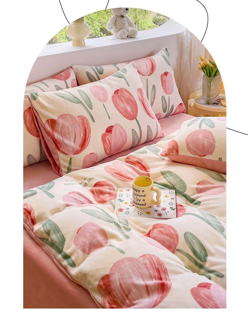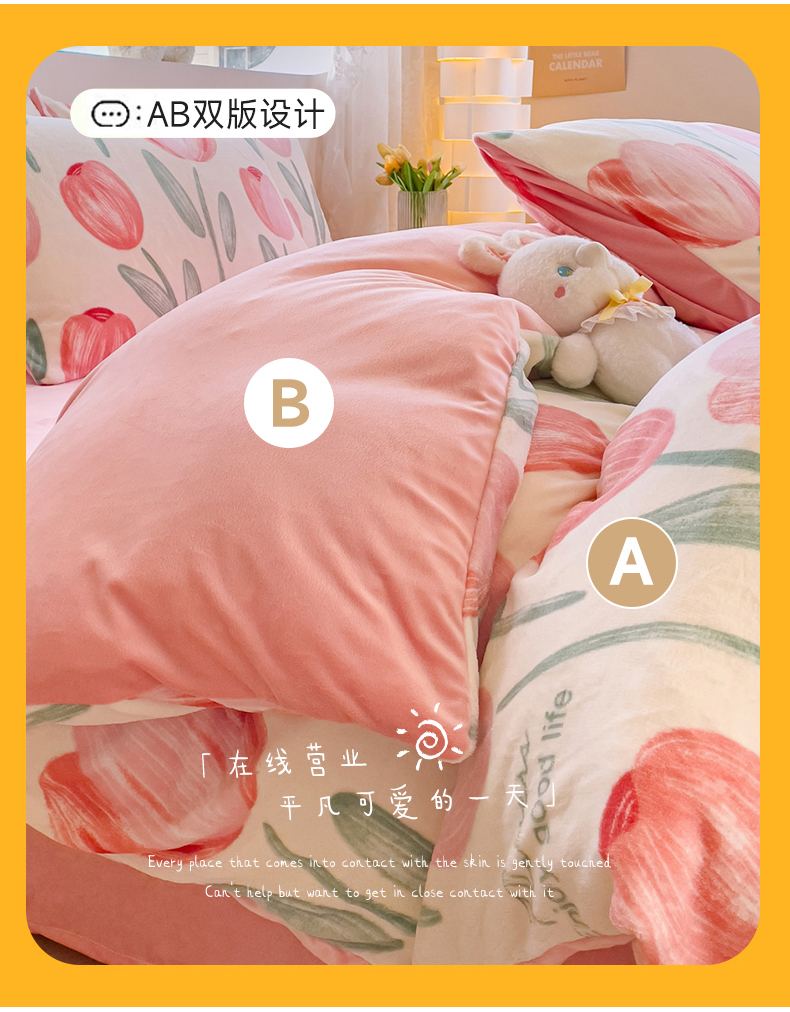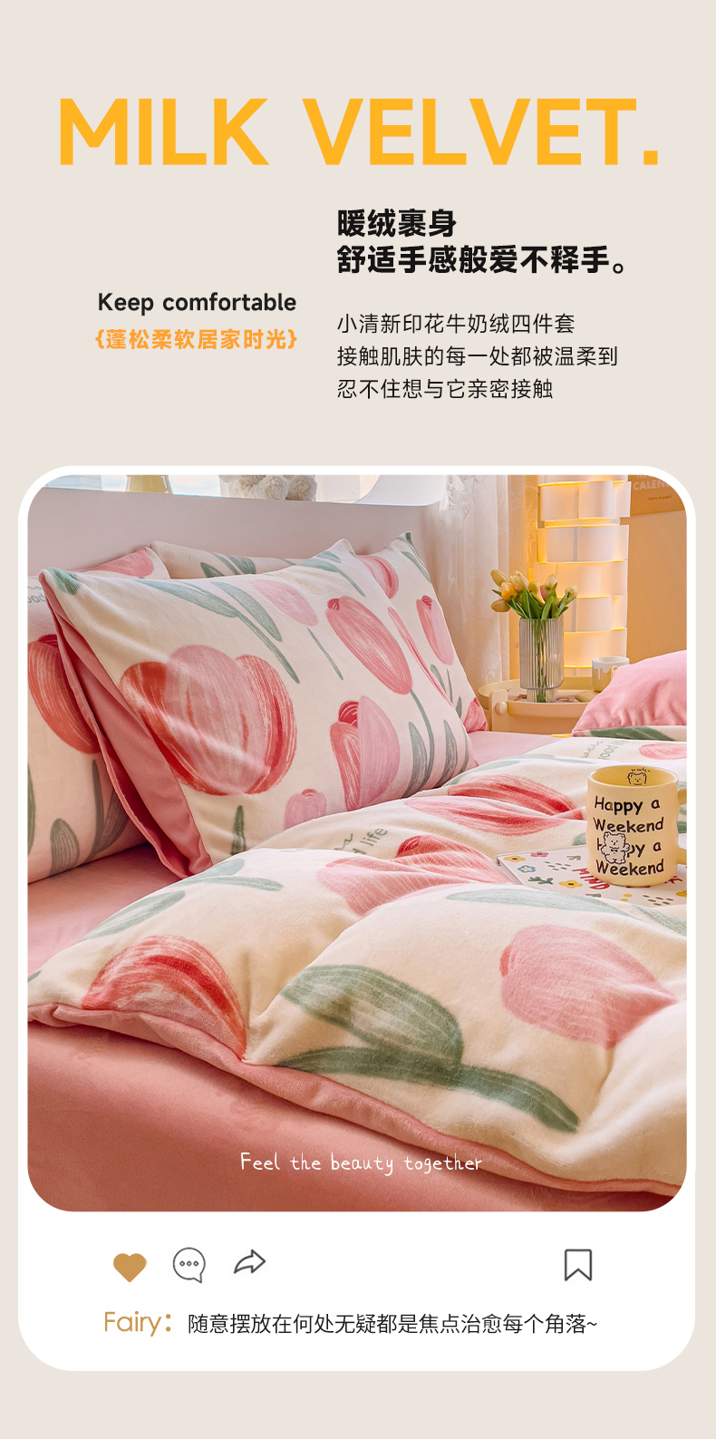 冬天小暖阳☀ 牛奶绒四件套 🥛牛奶丝滑触感 细节设计 含防静电导丝 可机洗