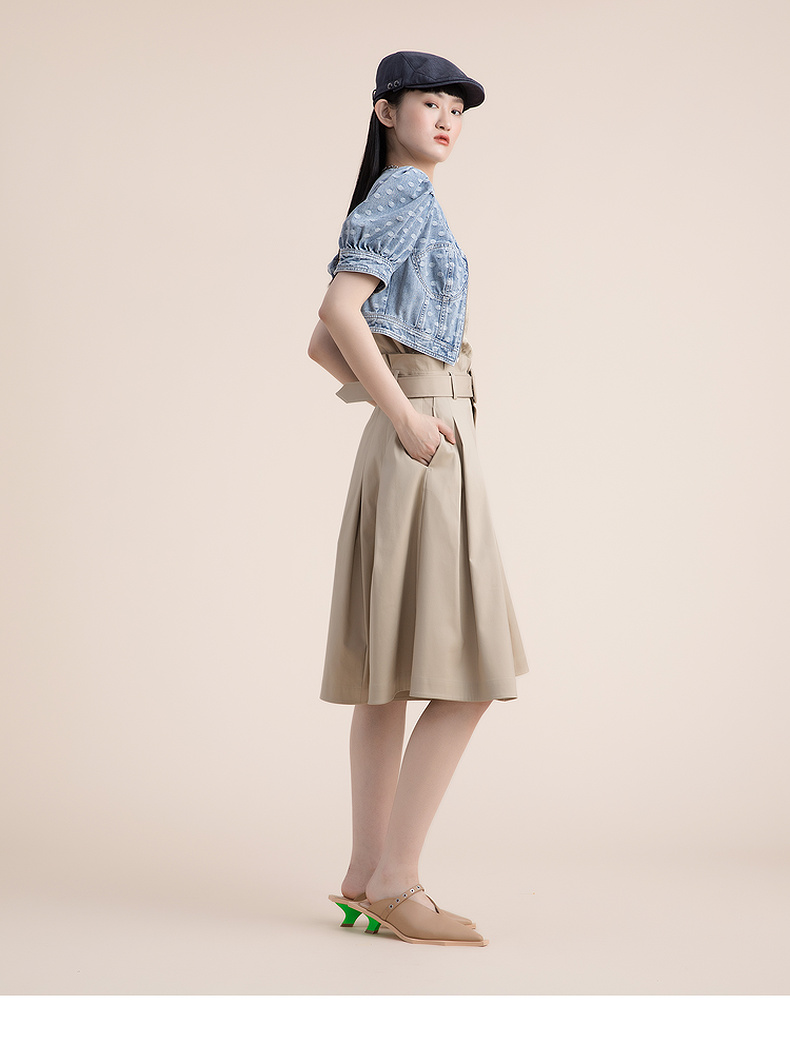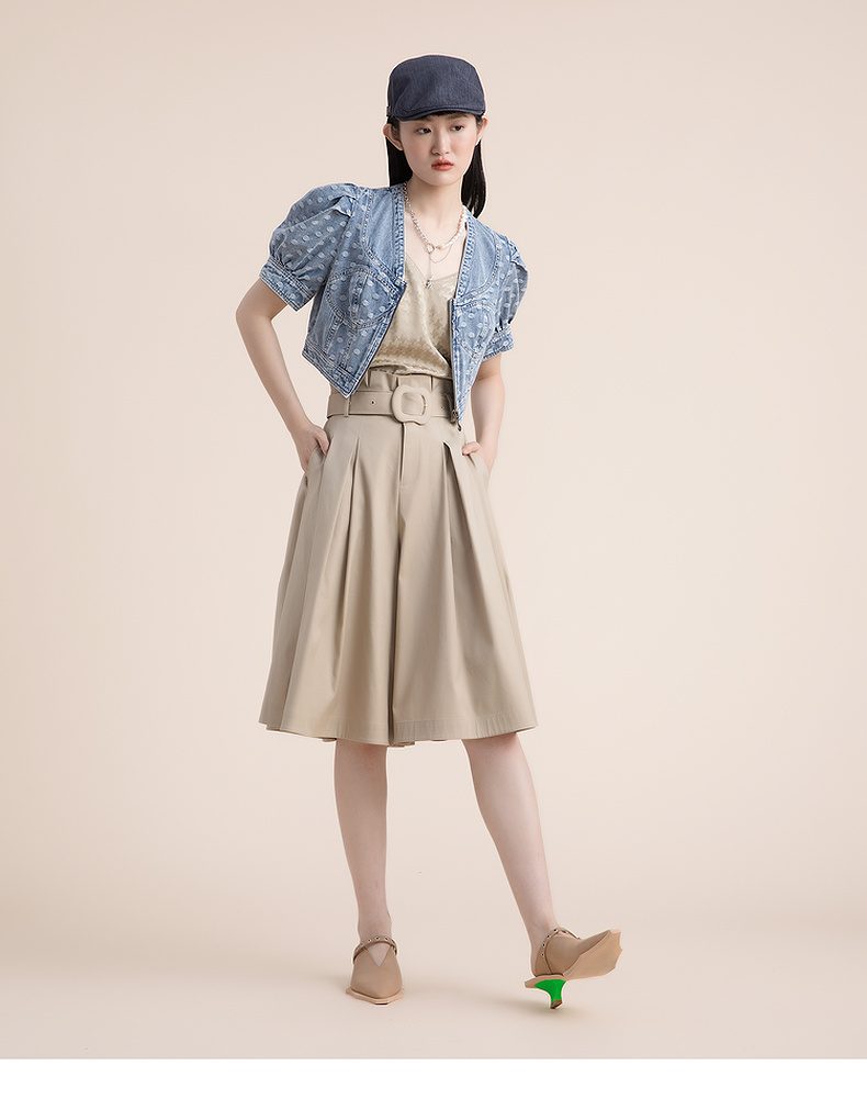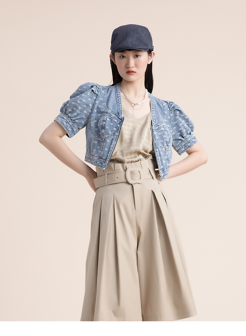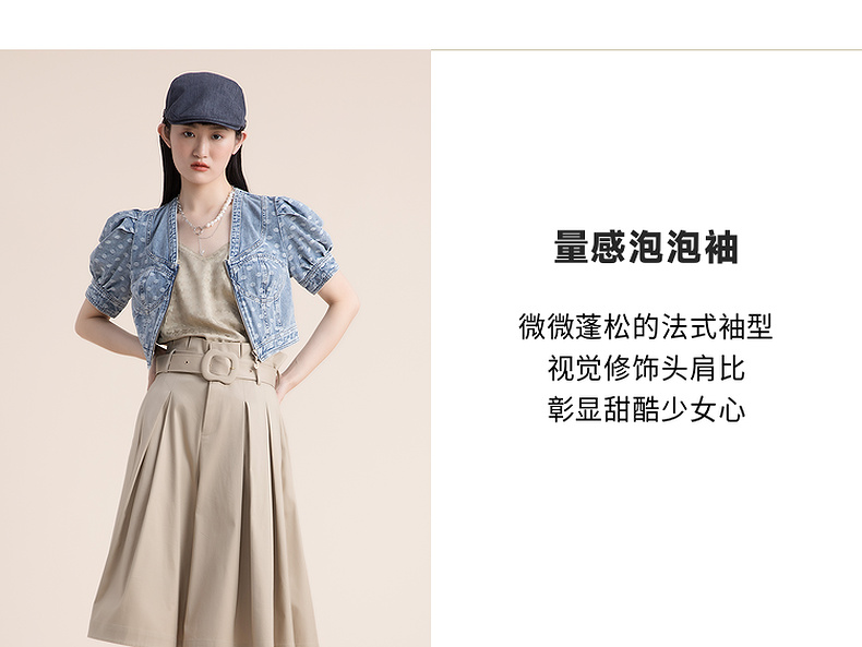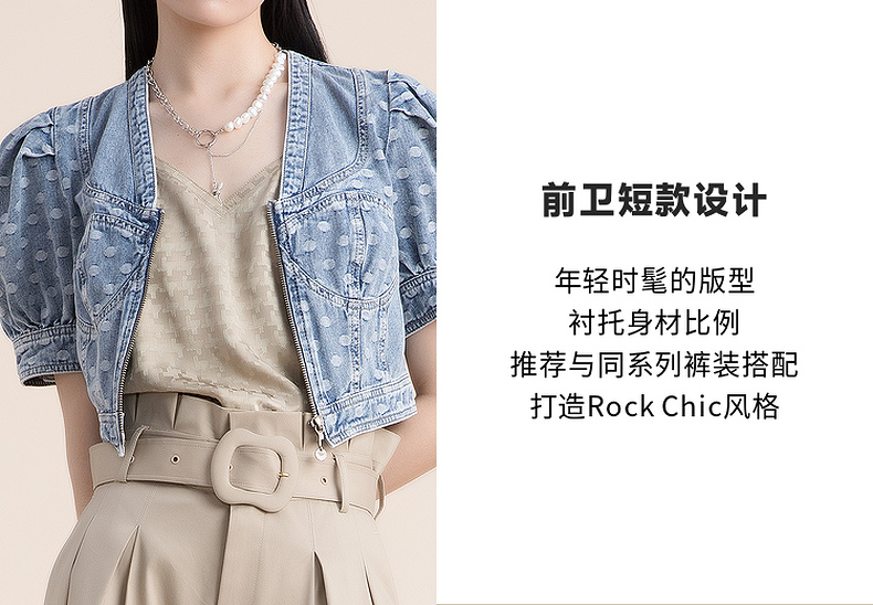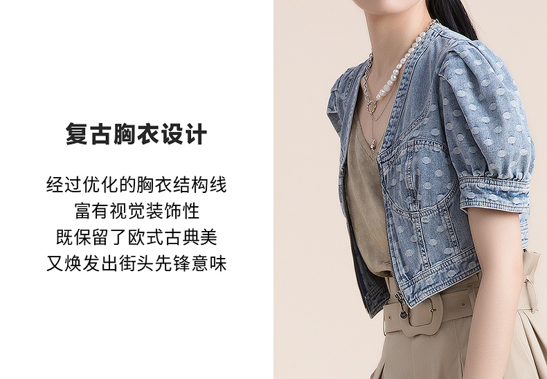 谜底2022夏季纯棉牛仔短外套v领设计感小众别致小上衣222MW0502