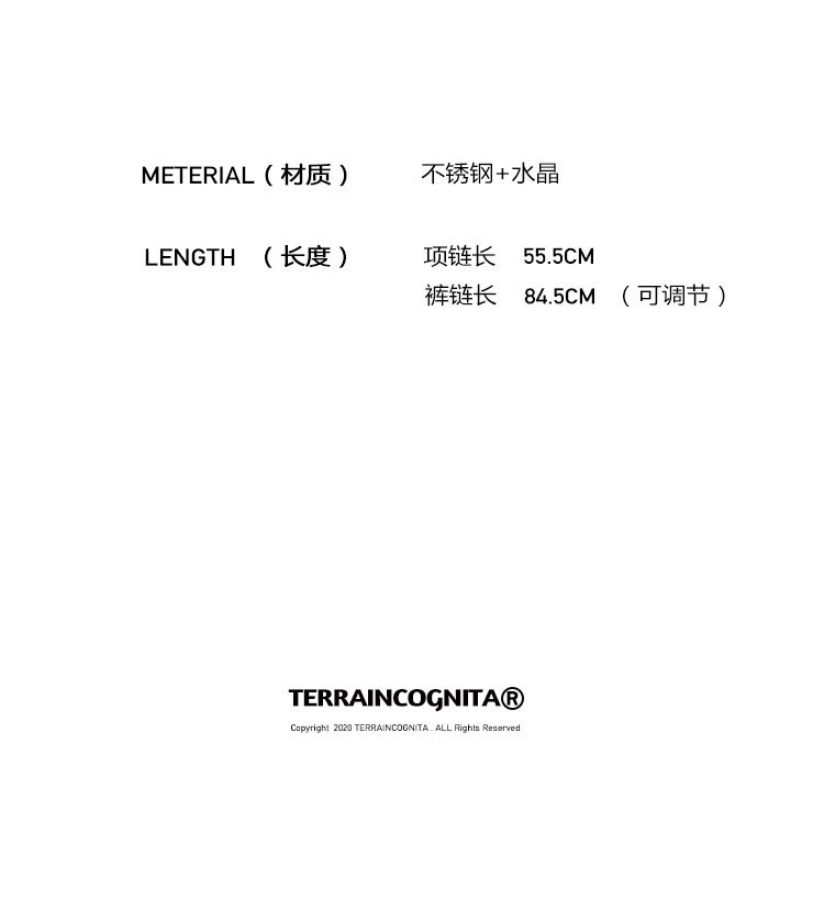 TERRAINCOGNITA新款手工水晶立体浮雕可拆卸项链透明浮空字母裤链