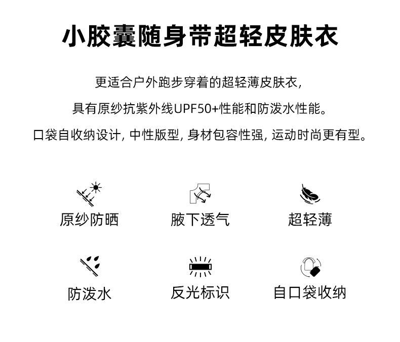 马孔多小胶囊超轻皮肤衣原纱防晒防泼水自收纳城市跑越野跑双栖