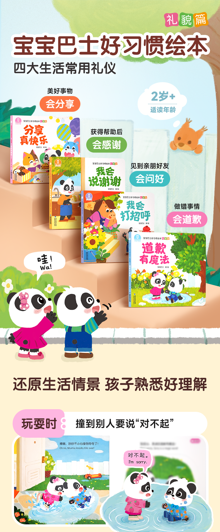 【点读版】宝宝巴士认知启蒙好习惯绘本-礼貌篇/4册(不含笔)