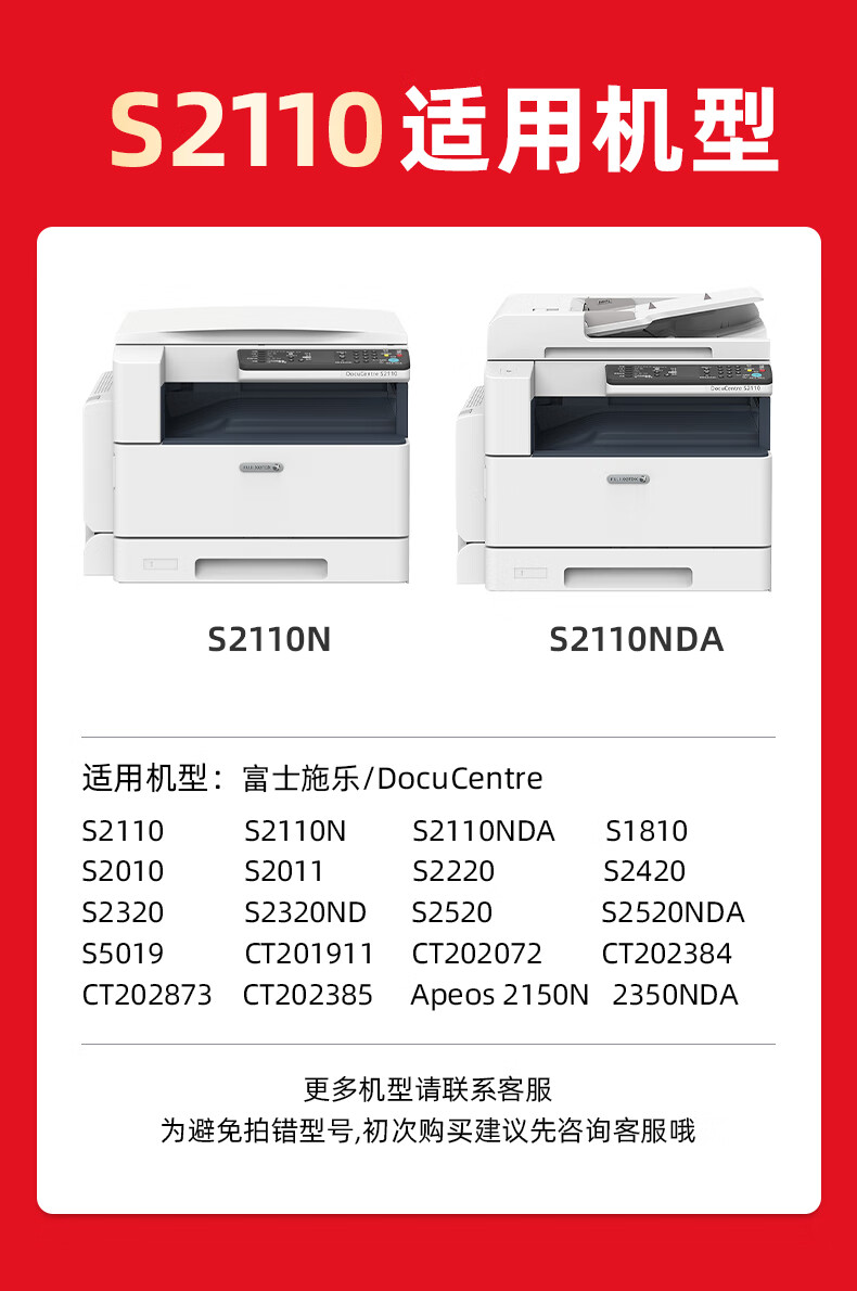 绘威S2110粉盒适用富士施乐S2110墨盒 s2011 S1810硒鼓 docucentre s2520 S2350nda 2150n 打印机墨粉 CT202873