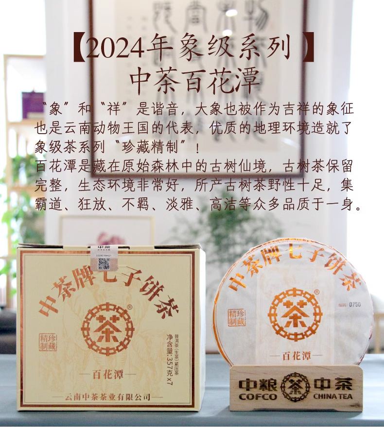 中粮-中茶 2024年中茶百花潭云南易武普洱茶生茶357克 /云南干仓直发
