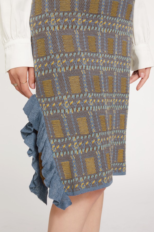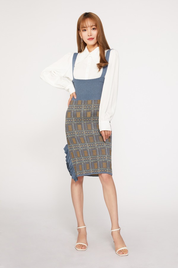 ANSUABEL 格纹高腰吊带针织连衣裙 9742