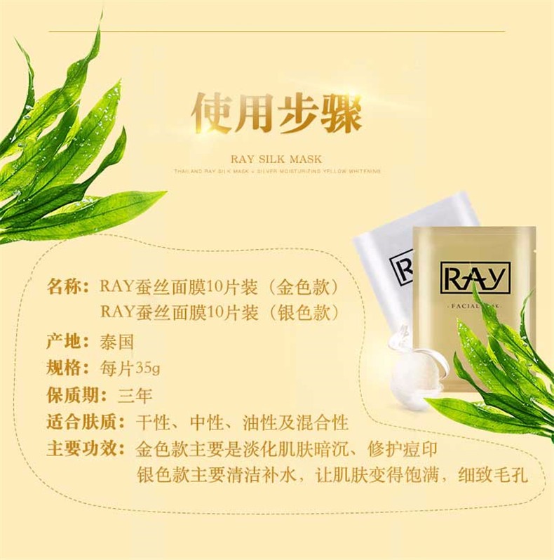 泰国 RAY 银色补水保湿蚕丝面膜 10片