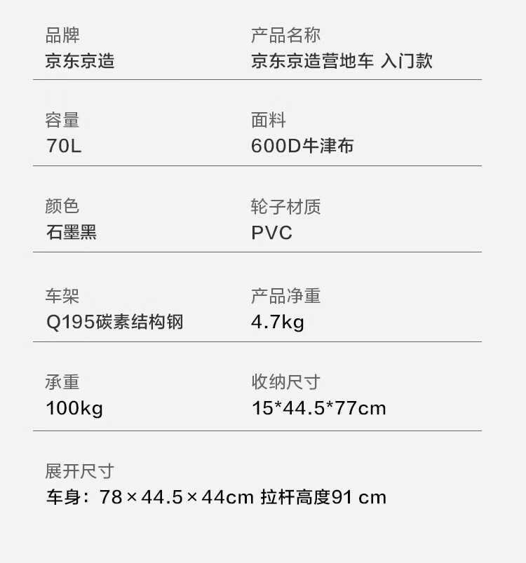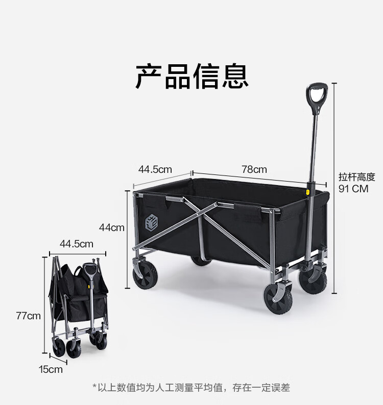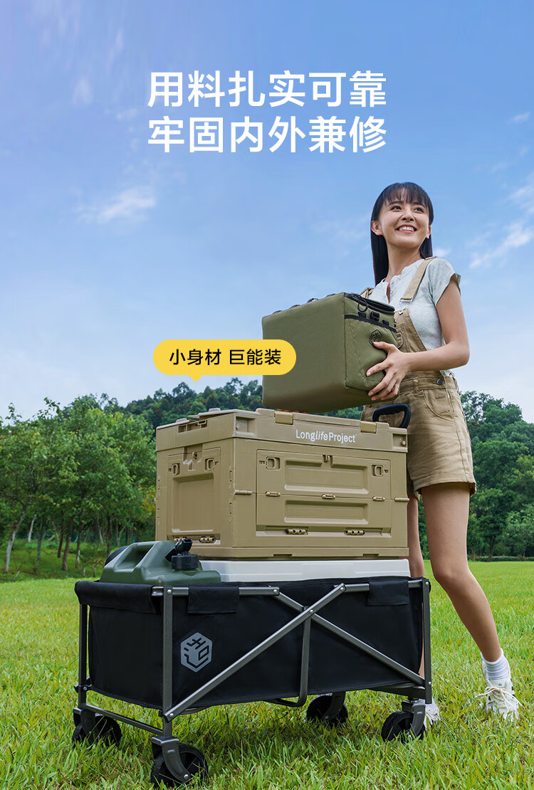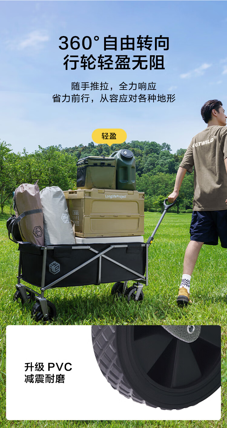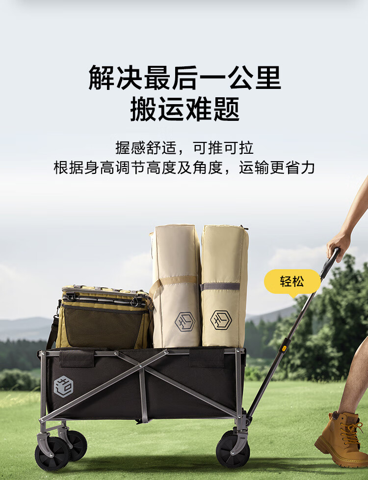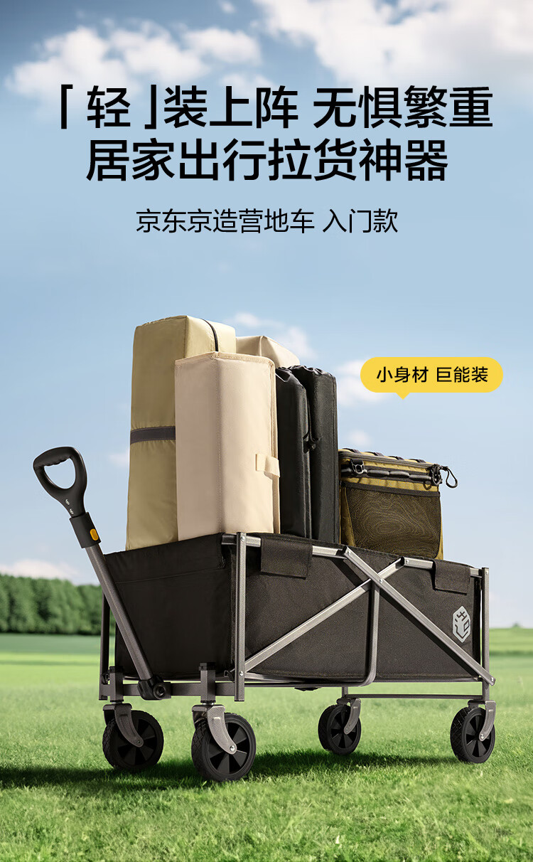 京东京造户外露营车 两向折叠 营地小推车拖车 野餐摆摊出行装备 石墨黑 100065655481