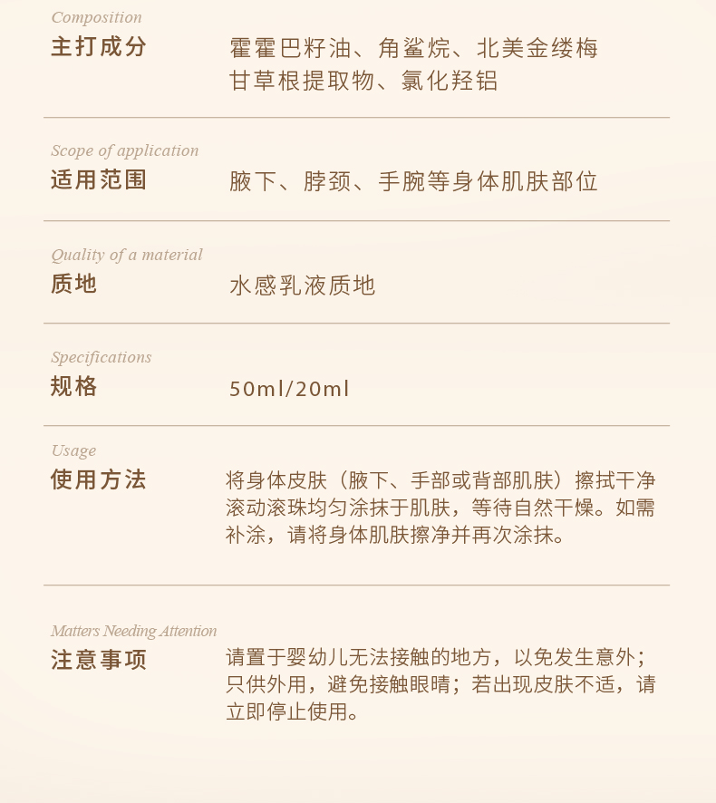 【现货速发】DearIrean 独特艾琳香体露女腋下干爽滚珠止汗露留香水走珠液50ml