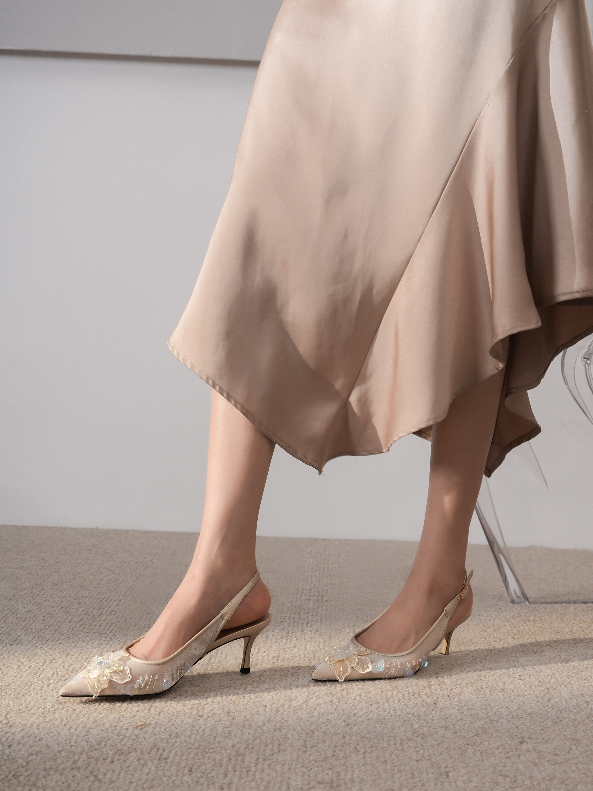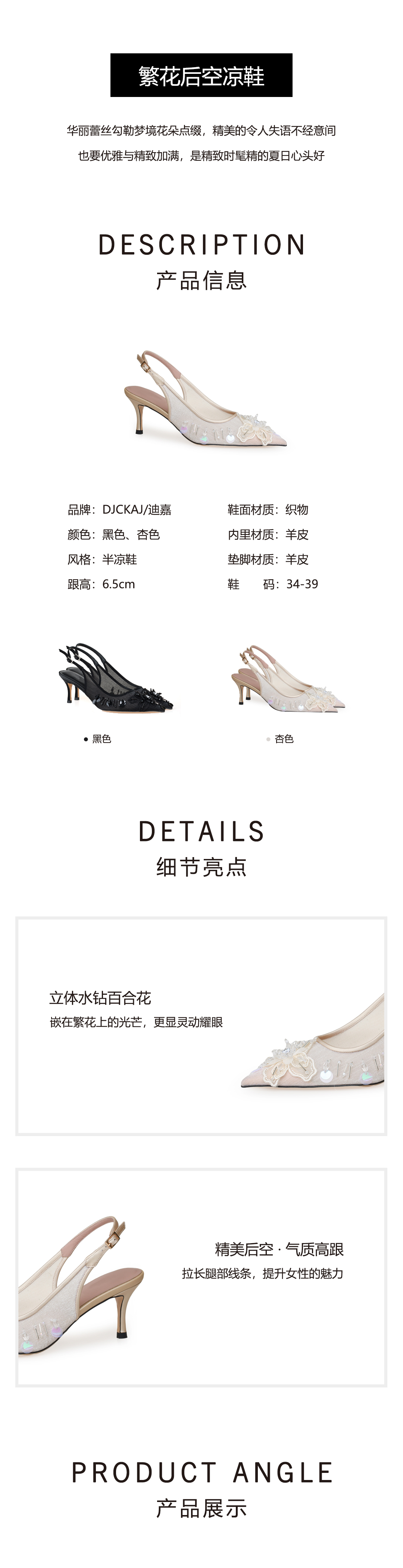豪麟名鞋奥莱迪嘉女鞋半凉鞋织物DJJPA51WB011杏色 原价1660元