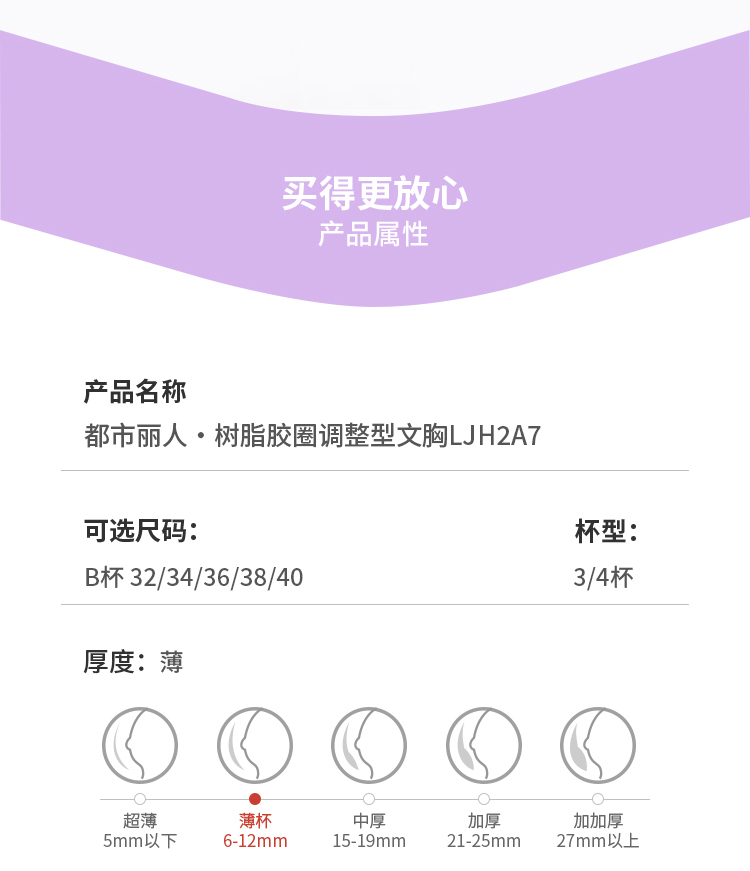 都市丽人舒软挺塑调整型文胸薄蕾丝树脂胶圈塑身文胸LJH2A7