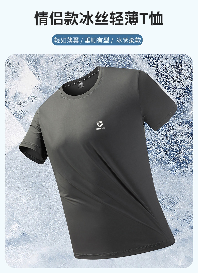 积能 自带凉感男女新款夏季冰丝平纹凉感舒适跑步运动短袖T恤