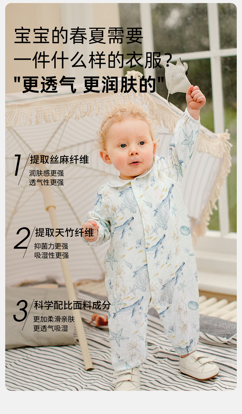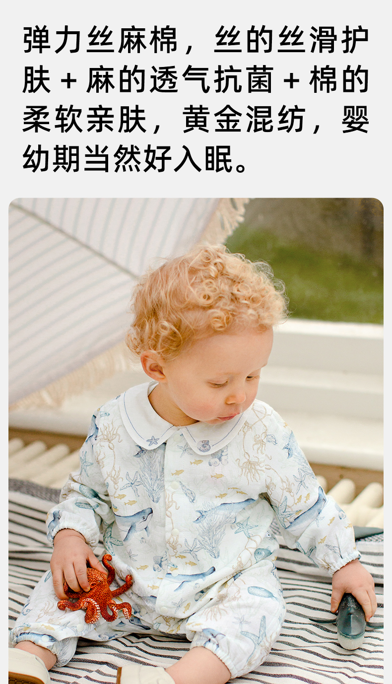 【宝宝服饰】嫚熙婴儿连体衣丝麻弹力棉亲肤柔软衣服