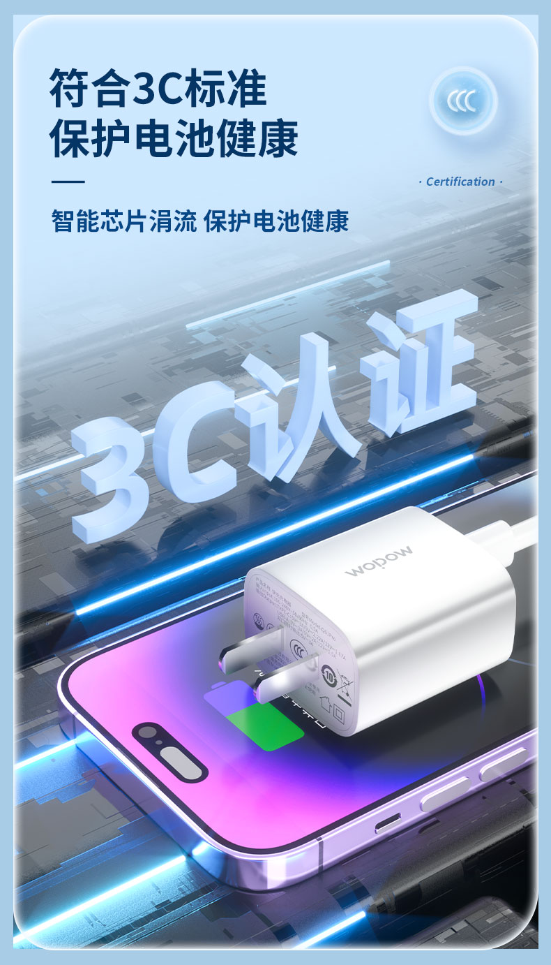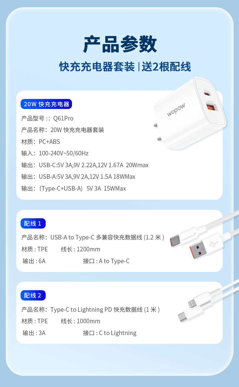 【自营】 沃品WOPOW 20W快充充电器套装 极致散热 低温快充不烫